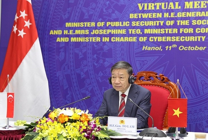 ຕອນເຊົ້າວັນທີ 11 ຕຸລາ, ທ່ານພົນເອກ ໂຕເລີມ, ລັດຖະມົນຕີກະຊວງຕຳຫຼວດຫວຽດນາມ ໄດ້ເຂົ້າຮ່ວມກອງປະຊຸມແບບທາງໄກ ກັບທ່ານນາງ Josephine Teo, ລັດຖະມົນຕີກະຊວງສື່ສານ ແລະ ຖະແຫຼງຂ່າວ ທັງເປັນລັດຖະມົນຕີຮັບຜິດຊອບຄວາມໝັ້ນຄົງທາງເຄື່ອຂ່າຍອີນເຕີແນັດ ສິງກະໂປ.