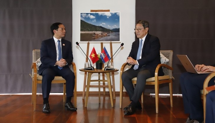 ໃນວັນດຽວກັນ, ທ່ານລັດຖະມົນຕີກະຊວງການຕ່າງປະເທດ ຫວຽດນາມ ບຸຍແທ໋ງເຊີນ ກໍ່ໄດ້ພົບປະກັບ ທ່ານຮອງນາຍົກລັດຖະມົນຕີ, ລັດຖະມົນຕີກະຊວງການຕ່າງປະເທດ ແລະ ການຮ່ວມມືສາກົນ ລາຊະອານາຈັກ ກຳປູເຈຍ ສົກແຈນດາ ໂຊເພຍ. ສອງທ່ານໄດ້ເຫັນດີເປັນເອກະພາບ ຈະຕັ້ງໜ້າປະສານສົບທົບກັນ ຈັດກອງປະຊຸມຄະນະກຳມະການປະສົມ ຫວຽດນາມ - ກຳປູເຈຍ ຄັ້ງທີ 21 ວ່າດ້ວຍການຮ່ວມມືດ້ານເສດຖະກິດ, ວັດທະນະທຳ, ວິທະຍາສາດ ແລະ ເຕັກນິກ ໃຫ້ສຳເລັດເປັນຢ່າງດີ; ຈັດຕັ້ງຜັນຂະຫຍາຍ ບົດບັນທຶກຊ່ວຍຈຳວ່າດ້ວຍການຮ່ວມມື ລະຫວ່າງ ສະຖາບັນການຕ່າງປະເທດ ຫວຽດນາມ ແລະ ສະຖາບັນການຕ່າງປະເທດ ແລະ ການຮ່ວມມືສາກົນ ກຳປູເຈຍ ໃຫ້ເກີດດອກອອກຜົນ; ສືບຕໍ່ຕັ້ງໜ້າພົບປະແລກປ່ຽນ, ເຈລະຈາການປັກຫຼັກໝາຍຊາຍແດນທາງບົກ 16% ທີ່ຍັງເຫຼືອ; ພິຈາລະນາເປີດບັນດາດ່ານຊາຍແດນໃໝ່ ລະຫວ່າງສອງປະເທດ. ກ່ຽວກັບການຮ່ວມມືພາຍໃນ ອາຊຽນ, ລັດຖະມົນຕີ ຫວຽດນາມ ແລະ ກຳປູເຈຍ ສອງທ່ານໄດ້ເຫັນດີເປັນເອກະພາບຈະປະສານສົມທົບຢ່າງແໜ້ນແຟ້ນ, ໜູນຊ່ວຍລາວໃນການເປັນປະທານ ອາຊຽນ 2024 ໃຫ້ສຳເລັດຢ່າງຈົບງາມ; ຊຸກຍູ້ຄວາມສາມັກຄີພາຍໃນກຸ່ມ, ເສີມຂະຫຍາຍບົດບາດໃຈກາງຂອງ ອາຊຽນ ໃນການແກ້ໄຂບັນດາບັນຫາພາກພື້ນ ແລະ ສາກົນ.
