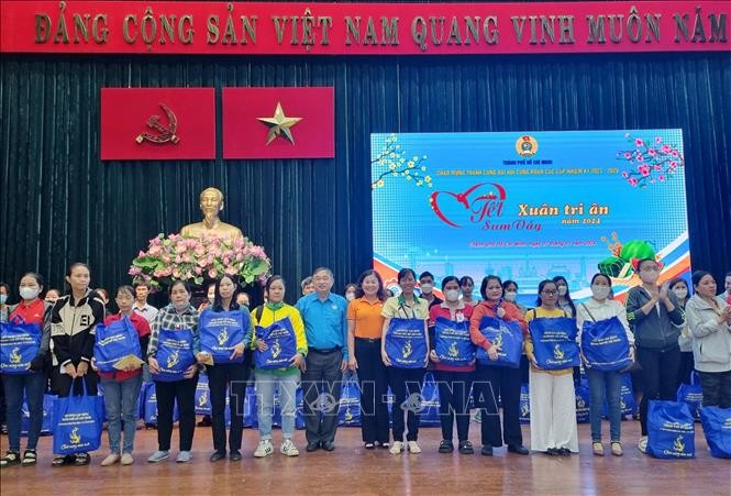 ວັນທີ 27 ມັງກອນ, ສະຫະພັນແຮງງານນະຄອນ ໂຮ່ຈີມິນ, ກຳມະບານບັນດາເຂດຜະລິດສົ່ງອອກ ແລະ ອຸດສາຫະກຳຂອງນະຄອນ, ກຳມະບານລັດຖະກອນກອນຂອງນະຄອນ ໄດ້ຈັດລາຍການ “ບຸນເຕັດເຕົ້າໂຮມ - ລະດູບານໃໝ່ຕອບບຸນແທນຄຸນ” ປີ 2024, ມອບຂອງຂວັນໃຫ້ສະມາຊິກກຳມະບານເກືອບ 5.000 ຄົນທີ່ມີປະສົບກັບຄວາມຫຍຸ້ງຍາກ, ກຳມະກອນຜູ້ອອກແຮງງານບໍ່ມີເງື່ອນໄຂກັບບ້ານຕ້ອນຮັບບຸນເຕັດ.