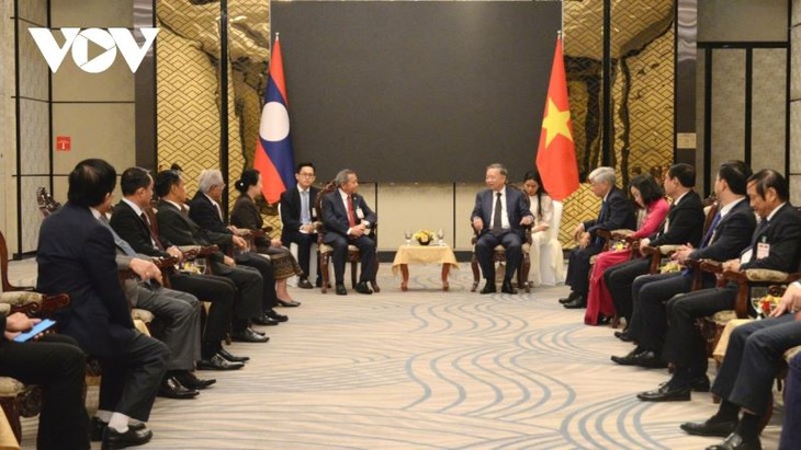 ຕອນບ່າຍວັນດຽວກັນ, ຢູ່ນະຄອນຫຼວງ ວຽງຈັນ, ທ່ານພົນໂທ ເລືອງຕາມກວາງ, ລັດຖະມົນຕີກະຊວງຕຳຫຼວດ ຫວຽດນາມ, ໄດ້ດຳເນີນການພົບປະເຈລະຈາກັບທ່ານພົນເອກ ວິໄລ ຫຼ້າຄຳຟອງ, ຮອງນາຍົກລັດຖະມົນຕີ, ລັດຖະມົນຕີກະຊວງປ້ອງກັນຄວາມສະຫງົບ ລາວ. ຢູ່ທີ່ນີ້, 2 ຝ່າຍໄດ້ເຫັນດີນຳກັນວ່າ, ໃນໄລຍະຈະມາເຖິງ ກຳລັງຕຳຫຼວດ 2 ປະເທດຈະສືບຕໍ່ຢືດໝັ້ນ, ເດັດດ່ຽວບໍ່ປະໃຫ້ບັນດາກຳລັງທີ່ເປັນປໍລະປັກສວຍໃຊ້ປະເທດນີ້ເພື່ອຕ້ານປະເທດອື່ນ, ສົມທົບກັນຈັດກອງປະຊຸມຂັ້ນຮອງລັດຖະມົນຕີກ່ຽວກັບການຮ່ວມມືປ້ອງກັນ, ຕ້ານອາດຊະຍາກຳຄັ້ງທີ 8 ລະຫວ່າງກຳລັງຕຳຫຼວດ 2 ປະເທດ ຫວຽດນາມ - ລາວ…