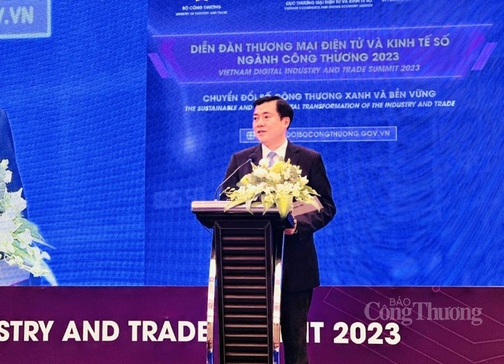 ຕອນເຊົ້າວັນທີ 21 ພະຈິກ, ຢູ່ຮ່າໂນ້ຍ, ກົມການຄ້າເອເລັກໂຕນິກ ແລະ ເສດຖະກິດ ດີຈີຕອນ (ກະຊວງອຸດສາຫະກຳ ແລະ ການຄ້າ ຫວຽດນາມ) ເປັນເຈົ້າພາບ ແລະ ສົມທົບກັບບັນດາຫົວໜ່ວຍທີ່ກ່ຽວຂ້ອງຈັດເວທີປາໄສແຫ່ງຊາດການຄ້າເອເລັກໂຕນິກ ແລະ ເສດຖະກິດດີຈີຕອນຂະແໜງອຸດສາຫະກຳ - ການຄ້າປີ 2023. ດ້ວຍຫົວຂໍ້ “ຫັນເປັນດີຈີຕອນໃນຂົງເຂດອຸດສາຫະກຳ - ການຄ້າ ສີຂຽວ ແລະ ແບບຍືນຍົງ”, ເວທີປາໄສໄດ້ເຕົ້າໂຮມບັນດານັກຊ່ຽວຊານຢູ່ພາຍໃນ ແລະ ຕ່າງປະເທດມາປຶກສາຫາລື, ສະເໜີມາດຕະການກໍ່ຄືວິທີການສົມທົບ ແລະ ລະດົມແຫຼ່ງກຳລັງໃຫ້ແກ່ວິວັດການຫັນເປັນດີຈີຕອນ, ໝູນໃຊ້ການຄ້າເອເລັກໂຕນິກ, ພັດທະນາລັດຖະບານເອເລັກໂຕນິກພາຍໃນ ຂະແໜງອຸດສາຫະກຳ ການຄ້າ - ຕາມທິດ “ເຕົ້າໂຮມ, ມີປະສິດທິຜົນ, ສີຂຽວ ແລະ ຍືນຍົງ”. ທີ່ວາລະປະຊຸມຄົບຄະນະ, ບັນດານັກປາຖະກະຖາໄດ້ແບ່ງບັນບັນດາເນື້ອໃນກ່ຽວກັບການກຳນົດທິດຫັນເປັນດີຈີຕອນຂອງຂະແໜງການຮອດປີ 2025; ນຳໃຊ້ເຕັກໂນໂລຊີ 4.0 ເຂົ້າການຜະລິດອັດສະລິຍະ; ມາດຕະການຫັນເປັນດີຈີຕອນໃນວິສາຫະກິດພາຍໃນຂະແໜງ; ທ່າອ່ຽງການຄ້າເອເລັກໂຕນິກແບບຍືນຍົງ. ກອງປະຊຸມສຳມະນາຫົວເລື່ອງສະເພາະໄດ້ຈັດຂຶ້ນໃນຕອນບ່າຍວັນດຽວກັນສຸມໃສ່ 2 ຫົວຂໍ້ “ທ່າອ່ຽງເຕັກໂນໂລຊີໃໝ່ ໃນການຫັນເປັນດີຈີຕອນຂອງຂະແໜງ ອຸດສາຫະກຳ - ການຄ້າ” ແລະ “ການພັດທະນາການຄ້າດີຈີຕອນແບບຍືນຍົງ”.