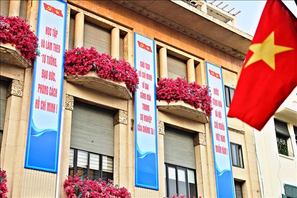 От политического центра на площади Бадинь до пригородов праздничная атмосфера наполняет город красным цветом государственного флага, транспарантами, лозунгами, пропагандистскими щитами и крупными декоративными сооружениями. Эти скоординированные пропагандистские усилия не только создают визуальные акценты, но и пробуждают гордость, уверенность и энтузиазм среди всех слоев населения столицы.