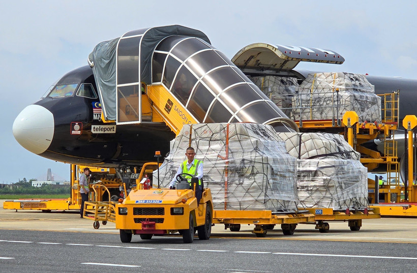Гуманитарный груз выгружают из самолёта. Фото: ВИА