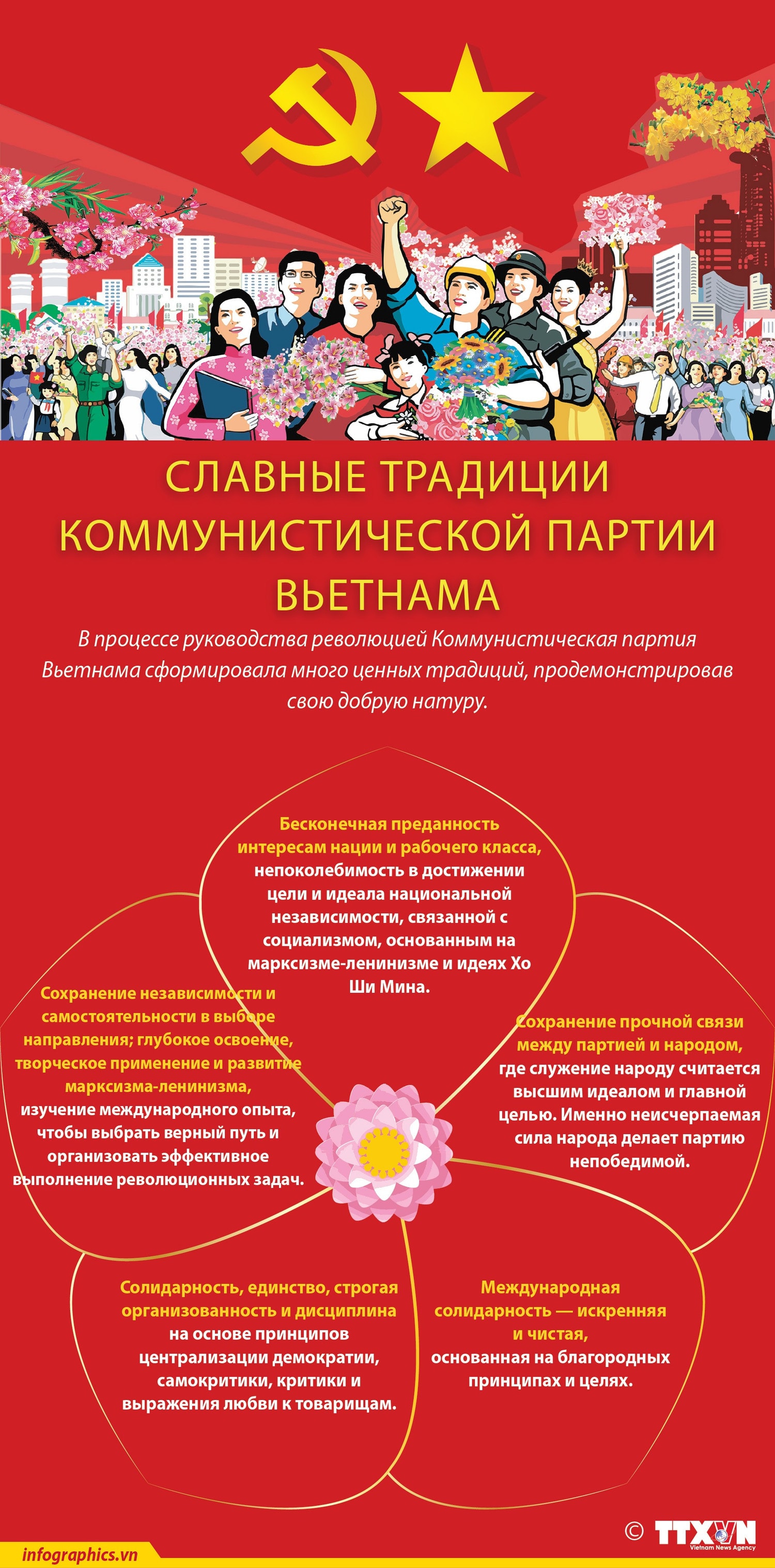 Богатая практика Вьетнамской революции со дня создания Партии и по настоящее время убедительно доказала, что правильное и мудрое руководство Партии является ведущим фактором, определяющим все победы нашей революции, создающим многочисленные исторические свершения на вьетнамской земле.
