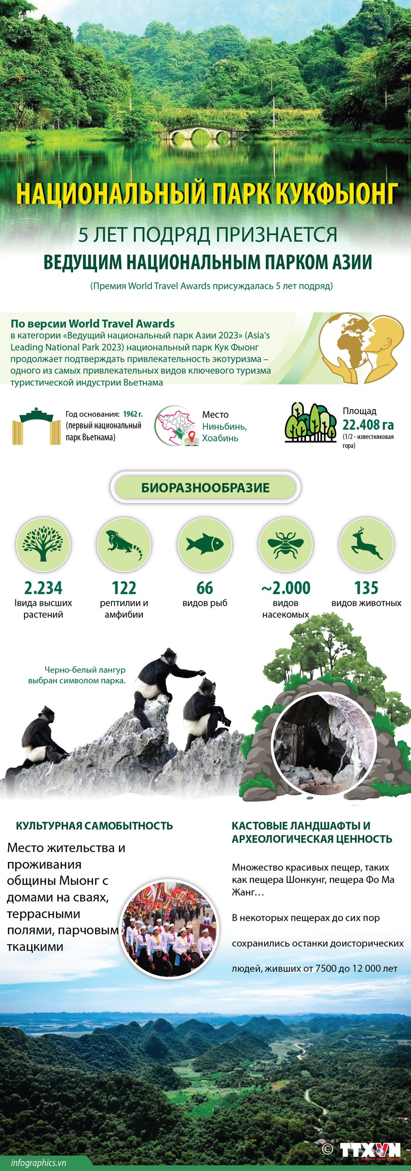 Национальный парк Кукфыонг был удостоен приза «Лидирующий в Азии национальный парк 2023 года» в рамках Премии World Travel Awards .