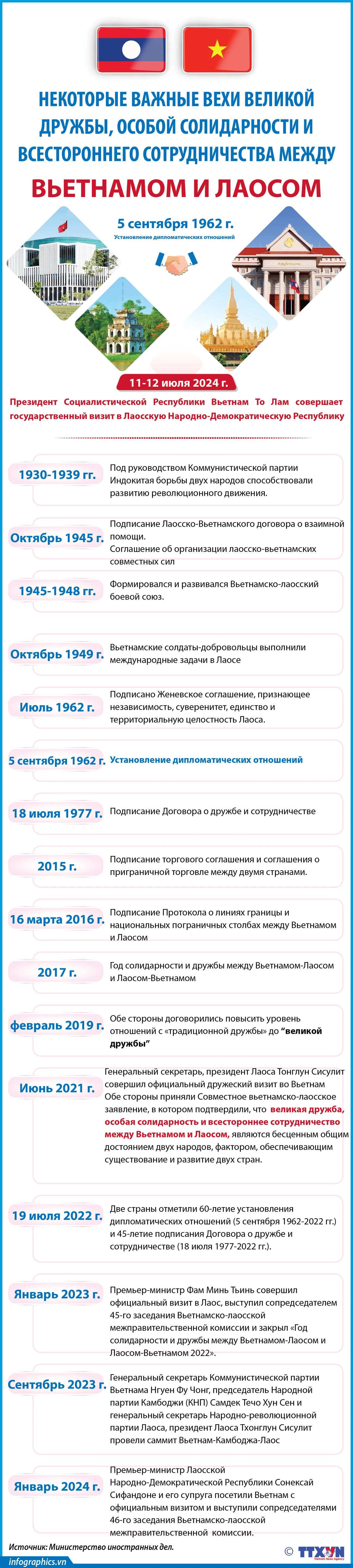 Великая дружба, особая солидарность и всестороннее сотрудничество между Вьетнамом и Лаосом являются примером в истории международных отношений, представляя собой редкую модель крепкой, верной, прозрачной и эффективной связи между двумя народами в их борьбе за независимость, свободу и социальный прогресс.