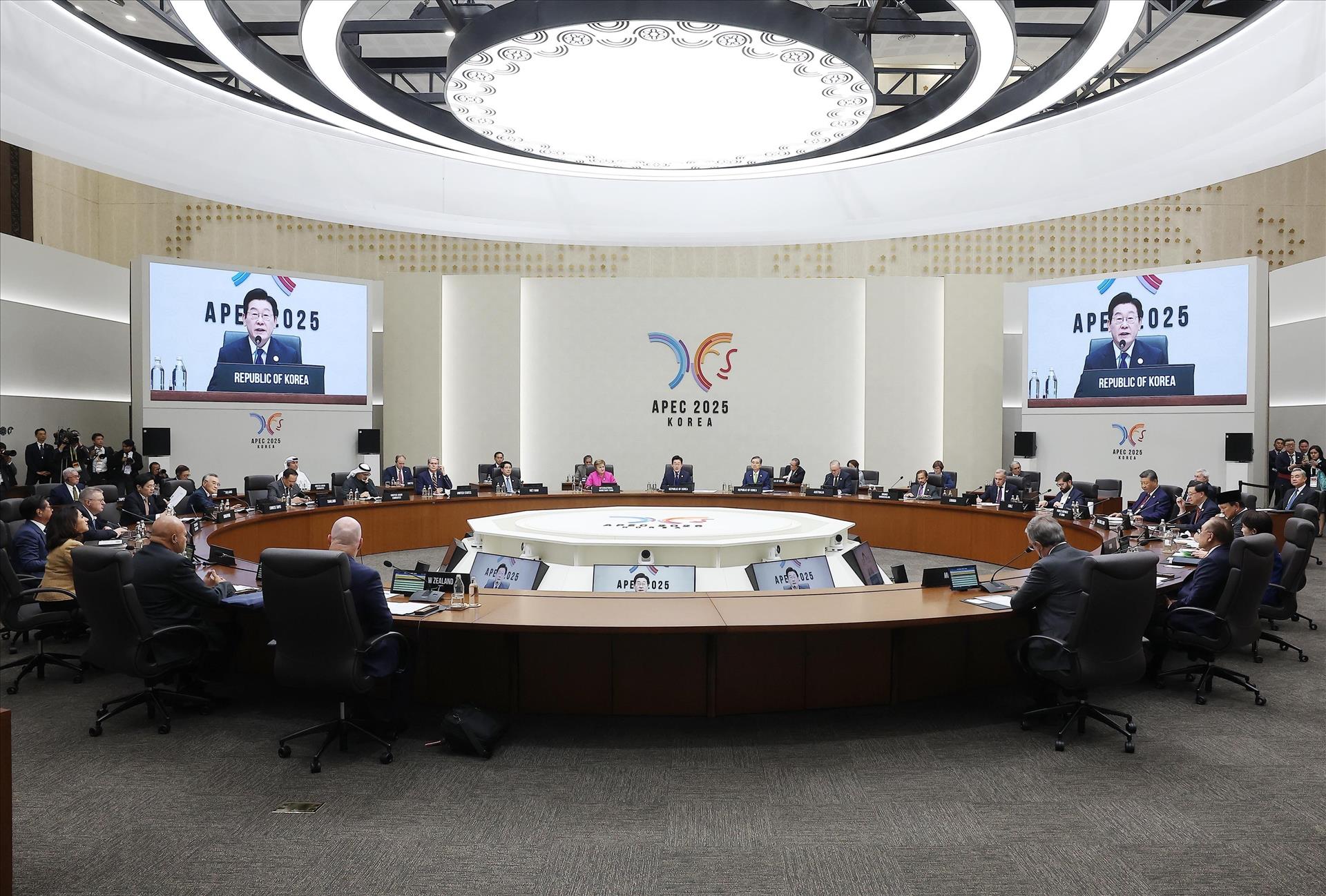 В-третьих, в рамках участия в Неделе на высшем уровне АТЭС 2025 года Президент Лыонг Кыонг провёл насыщенную и содержательную программу двусторонних мероприятий с принимающей стороной — Республикой Корея, а также с рядом экономик-участниц АТЭС. Президент провёл переговоры с Президентом Республики Корея, встретился с руководителями ряда корейских провинций, а также с вьетнамской диаспорой в юго-восточной части страны, что способствовало укреплению политического доверия и дальнейшему развитию всеобъемлющего стратегического партнёрства между Вьетнамом и Республикой Корея. Кроме того, Лыонг Кыонг провёл многочисленные встречи и беседы с руководителями делегаций почти всех экономик-участниц АТЭС, направленные на углубление многопланового сотрудничества между Вьетнамом и партнёрами, особенно в области экономики, торговли, инвестиций, науки и технологий, а также в новых направлениях — цифровой и «зелёной» трансформации, искусственном интеллекте и других перспективных секторах.