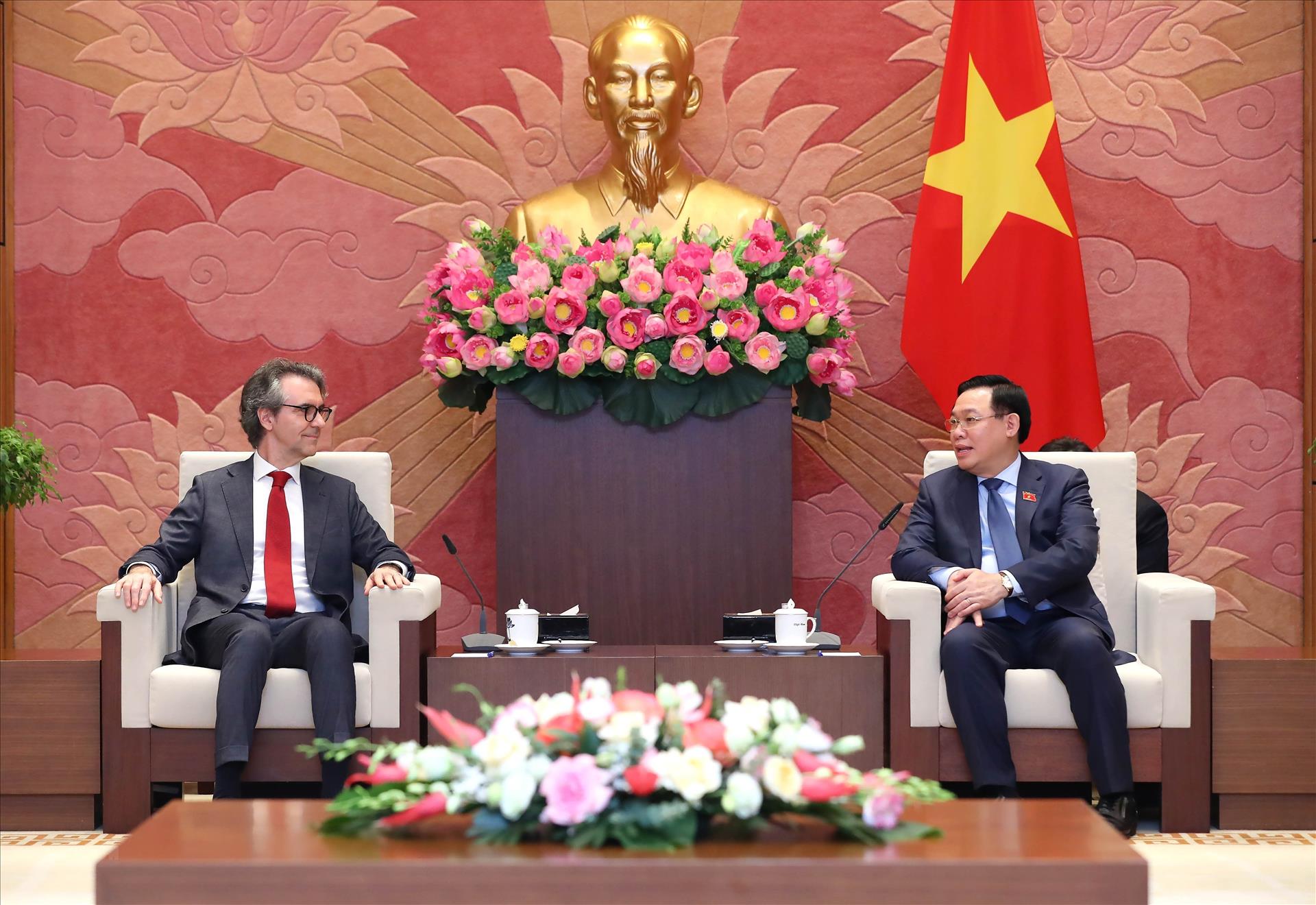 Со своей стороны посол Джорджио Алиберти высоко оценил роль председателя НС Выонг Динь Хюэ в продвижении отношений между ЕС и Вьетнамом, особенно отношений между Европейским парламентом и Национальным собранием Вьетнама, которые значительно укрепились. За последние четыре года обе стороны заключили Соглашение о свободной торговле между ЕС и Вьетнамом (EVFTA), Соглашение о партнерстве в области справедливого энергетического перехода (JETP). Посол сказал, что EVFTA является важным каналом, который выходит за рамки простой концепции торговли и должен быть полностью использован обеими сторонами в будущем для развития сотрудничества.