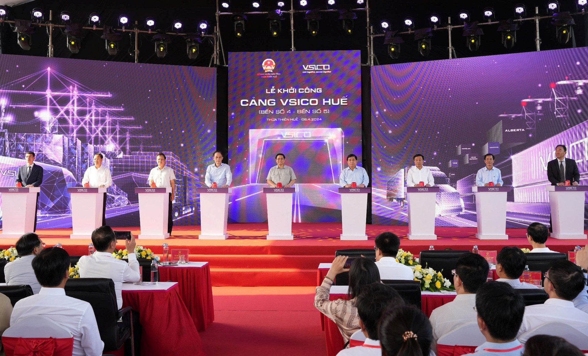 На церемонии закладки первого камня порта Vsico Хюэ (причалы № 4 и 5) премьер-министр Фам Минь Тьинь вручил подарки инвесторам и подрядчикам. Проект является частью портового кластера Чанмай, который в 2023 году обработал 4,5 млн тонн грузов и 68 700 пассажиров.