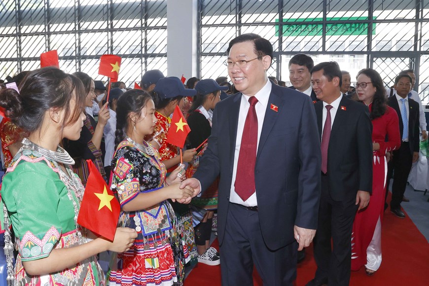 Председатель НС Выонг Динь Хюэ выразил пожелание, чтобы учителя школы были ярким примером нравственности, культурного поведения, энтузиазма, ответственности за профессию, были теми, кто вдохновляет и мотивирует учащихся на учебу и открытие новых горизонтов знаний.