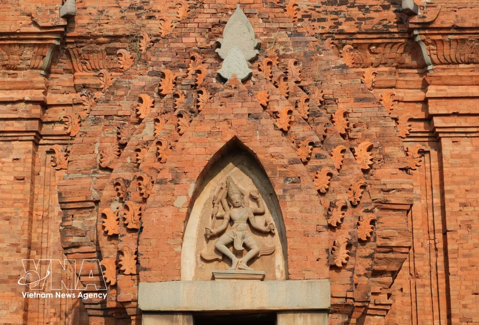 El arco de la puerta de la torre principal presenta un relieve del dios Shiva de pie sobre un pedestal. (Foto: VNA)
