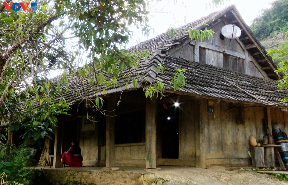 Antigua casa de madera de cinco estancias que refleja el modo de vida tradicional de las familias de la etnia Mong en el pasado. (Foto: Huyen Trang/VOV5). |