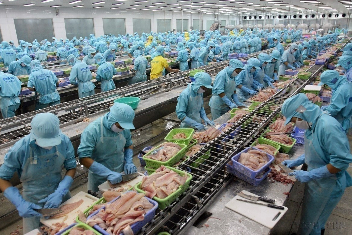 Desarrollo relativamente estable del sector agrícola; avances significativos en la industrialización y modernización de la agricultura y las zonas rurales. Las exportaciones de café, caucho, anacardo, pimienta y productos acuícolas alcanzaron grandes volúmenes y ocuparon posiciones destacadas a nivel mundial. En la imagen: los productos acuícolas están entre los rubros exportables de mayor crecimiento durante el período de renovación. Foto: Huy Hung – VNA