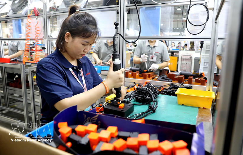 Trabajadores en el parque industrial Lien Ha Thai ( Zona económica de Thai Binh). Foto: VNA