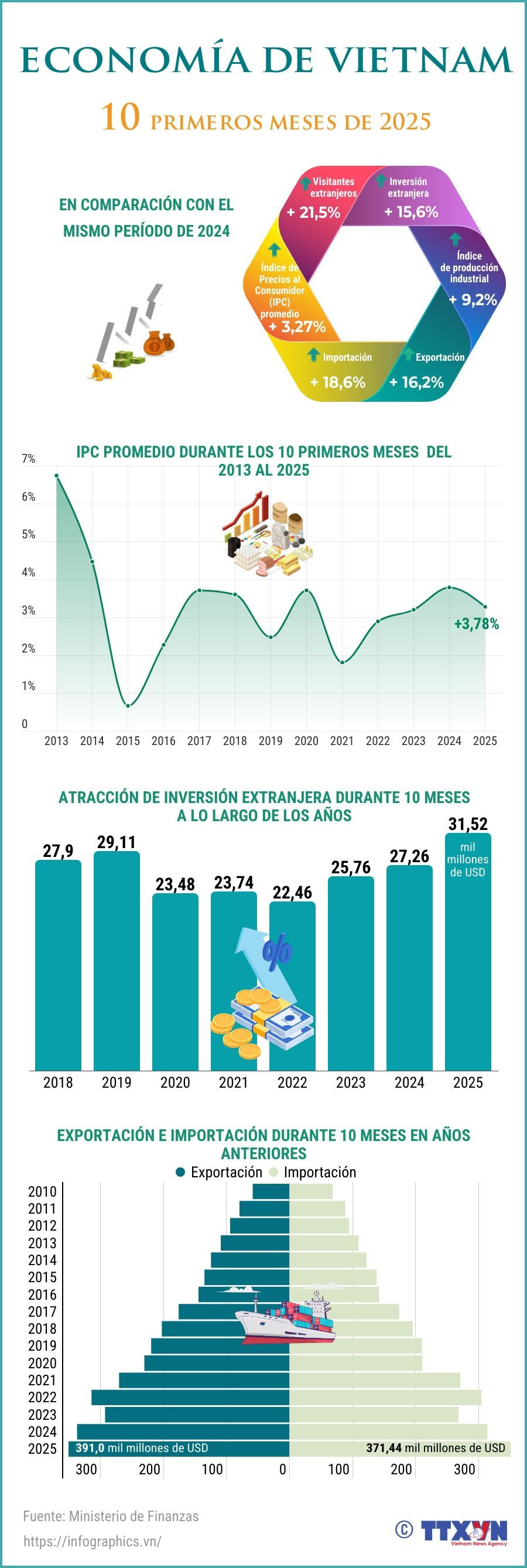 Economía de Vietnam sigue en auge tras 10 meses de 2025
