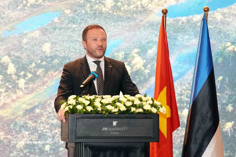 El ministro de Asuntos Exteriores de Estonia, Margus Tsahkna, habla en el evento. Fuente: VNA