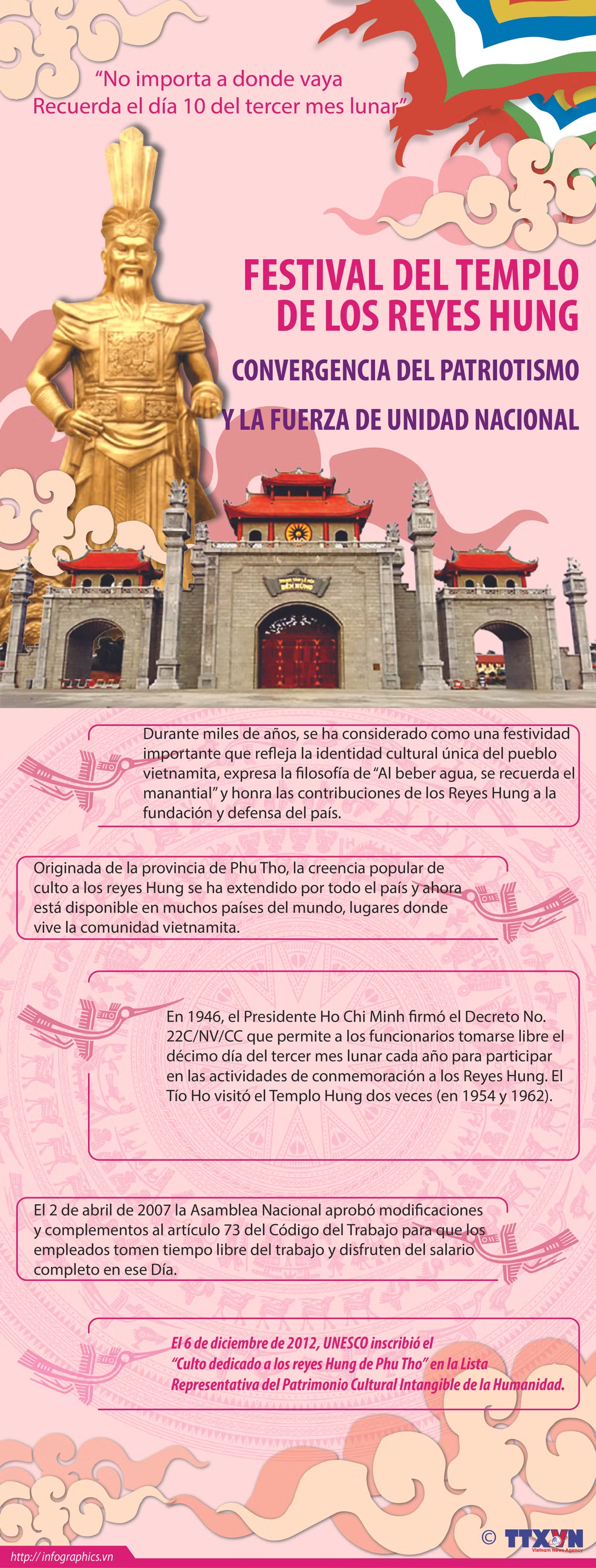 Durante miles de años, el Festival del templo de los reyes Hung se ha considerado como una festividad importante que refleja la identidad cultural única del pueblo vietnamita, expresa la filosofía de “Al beber agua, se recuerda el manantial” y honra las contribuciones de los Reyes Hung a la fundación y defensa del país.