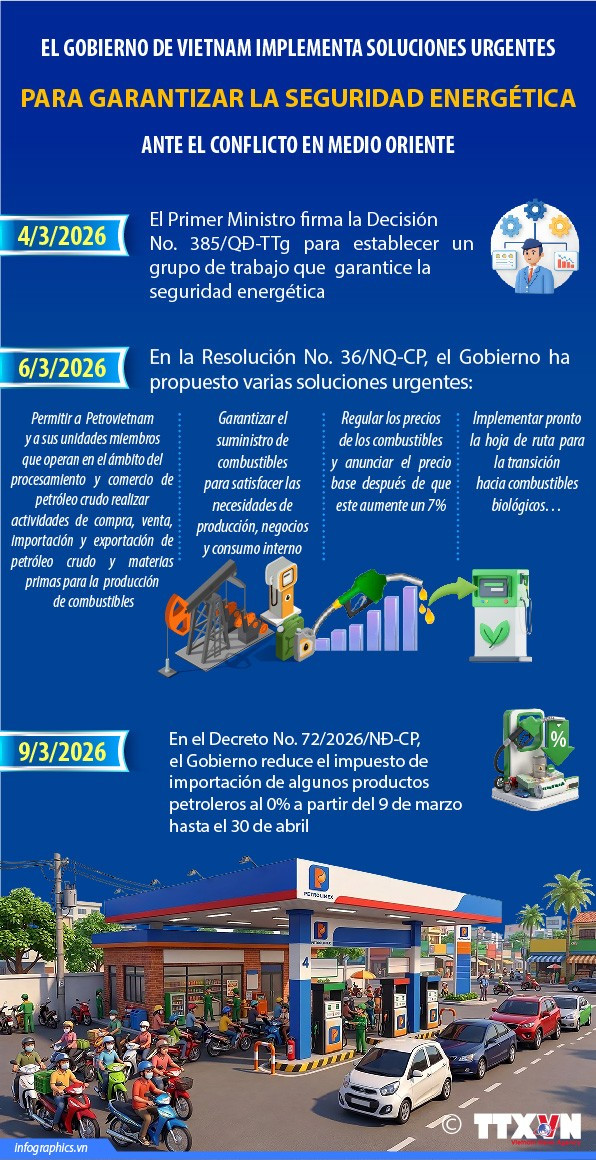 Ante las complejas evoluciones del conflicto militar en Medio Oriente desde el 28 de febrero, el Gobierno de Vietnam ha implementado soluciones urgentes para garantizar la seguridad energética.