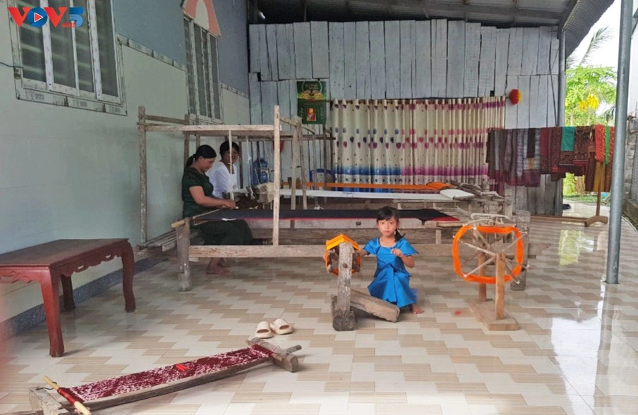 El tejido de brocado khmer no solo constituye un medio de vida para la población local, sino también un valioso legado cultural del pueblo jemer. (Foto: Ngoc Anh/VOV5)