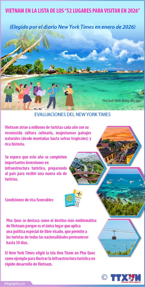 El New York Times incluye a Vietnam en su lista de los “52 lugares para visitar en 2026”. Destacan a Phu Quoc y su teleférico Hon Thom como símbolos del creciente turismo vietnamita.