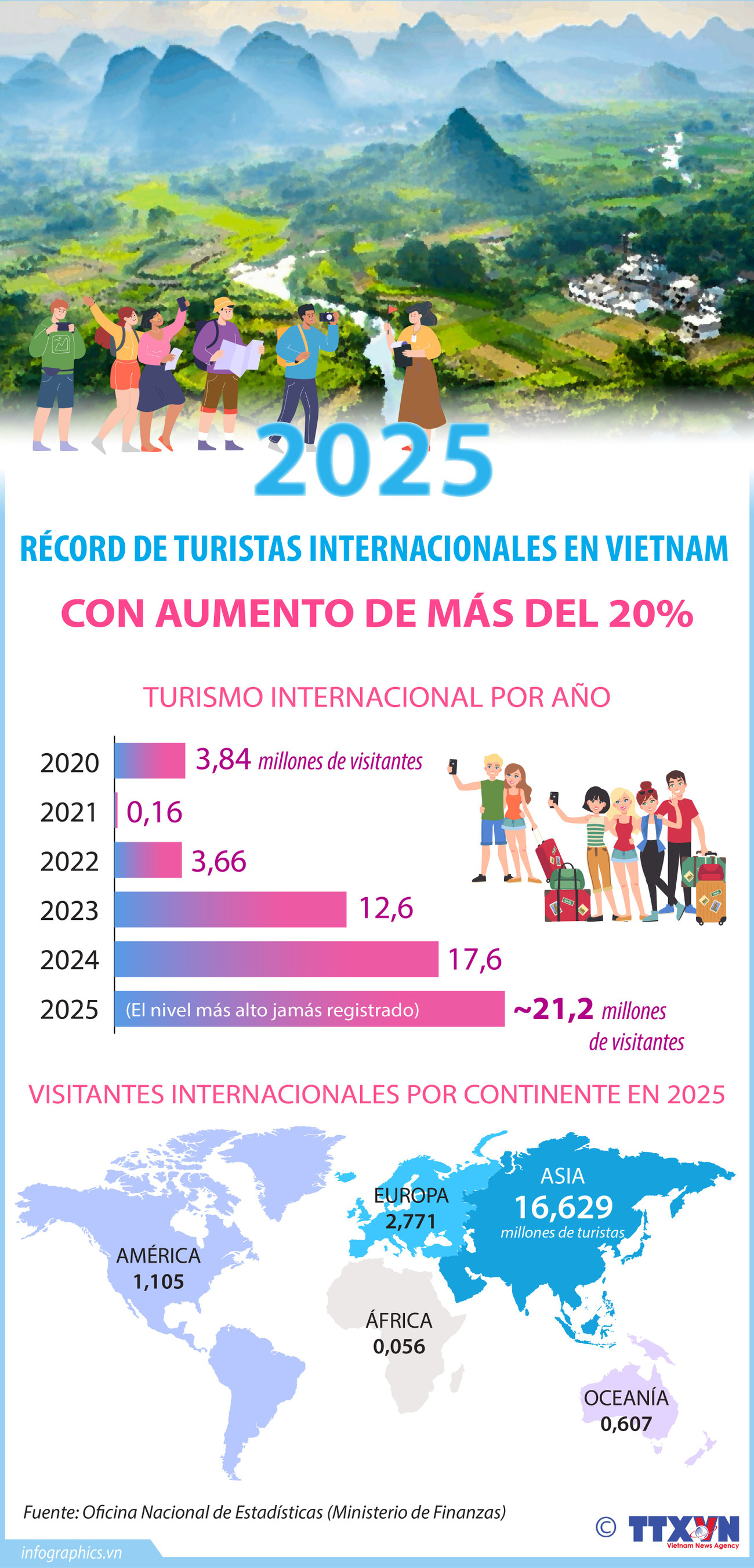 En 2025, el turismo en Vietnam alcanzó un hito destacado: el país recibió cerca de 21,2 millones de visitantes internacionales, lo que supone un crecimiento superior al 20,4% respecto al año anterior.