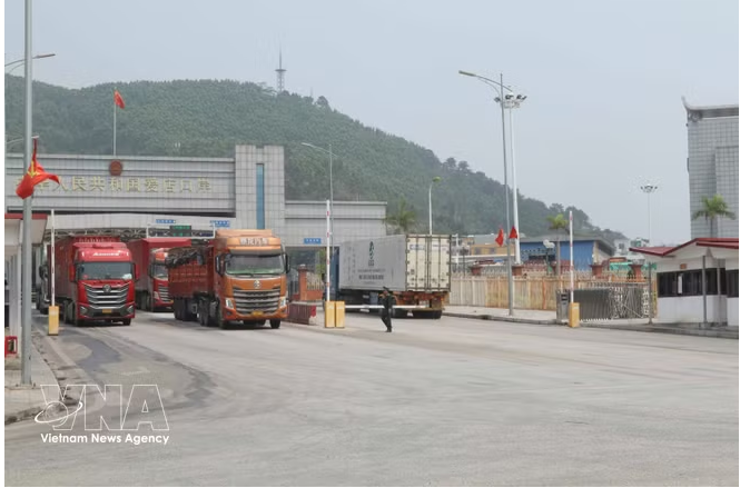 Vehículos que transportan mercancías a través del paso fronterizo de Chi Ma en la provincia vietnamita de Lang Son. (Foto: VNA)