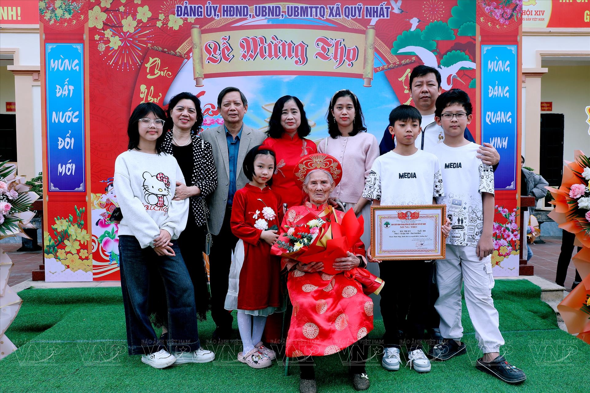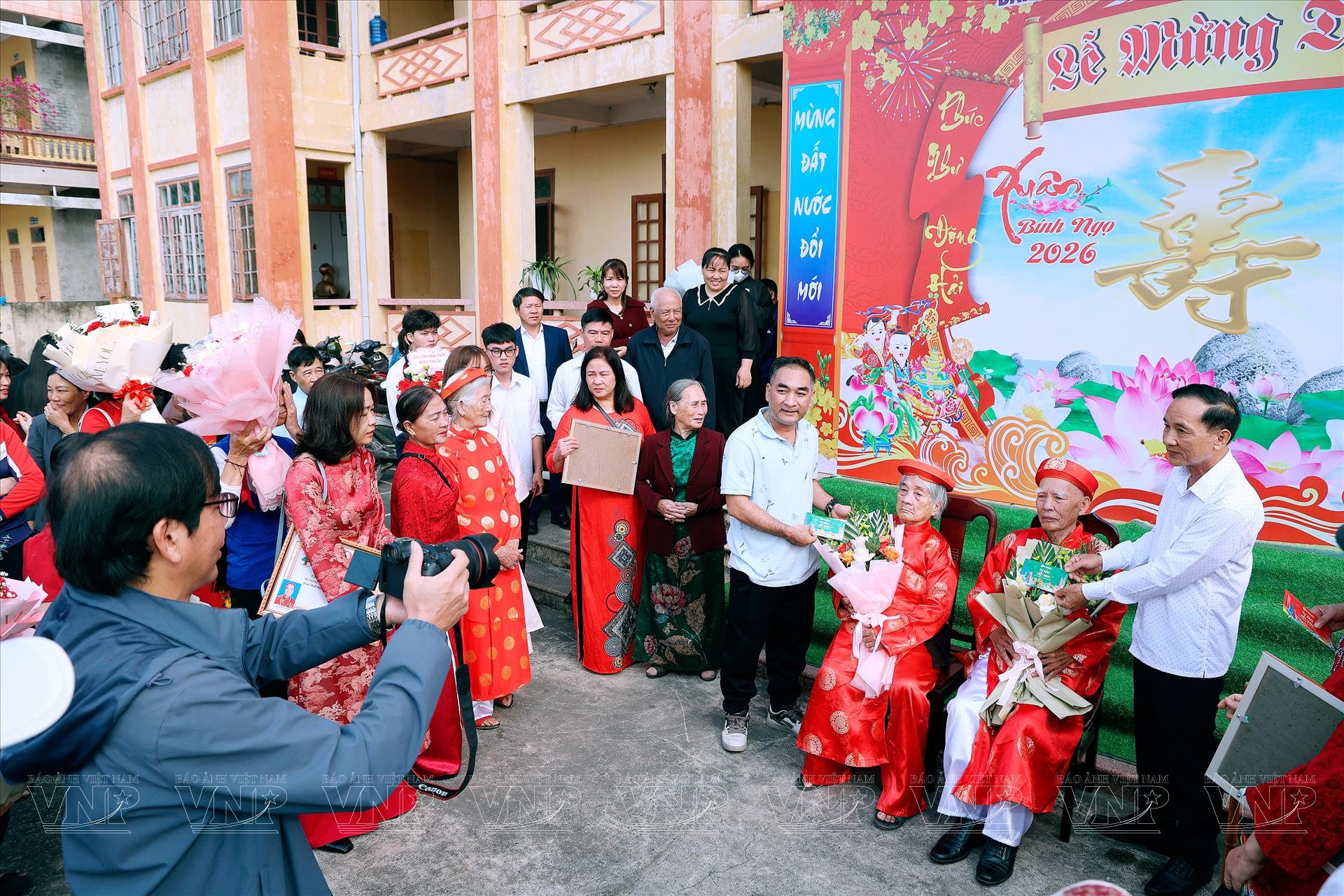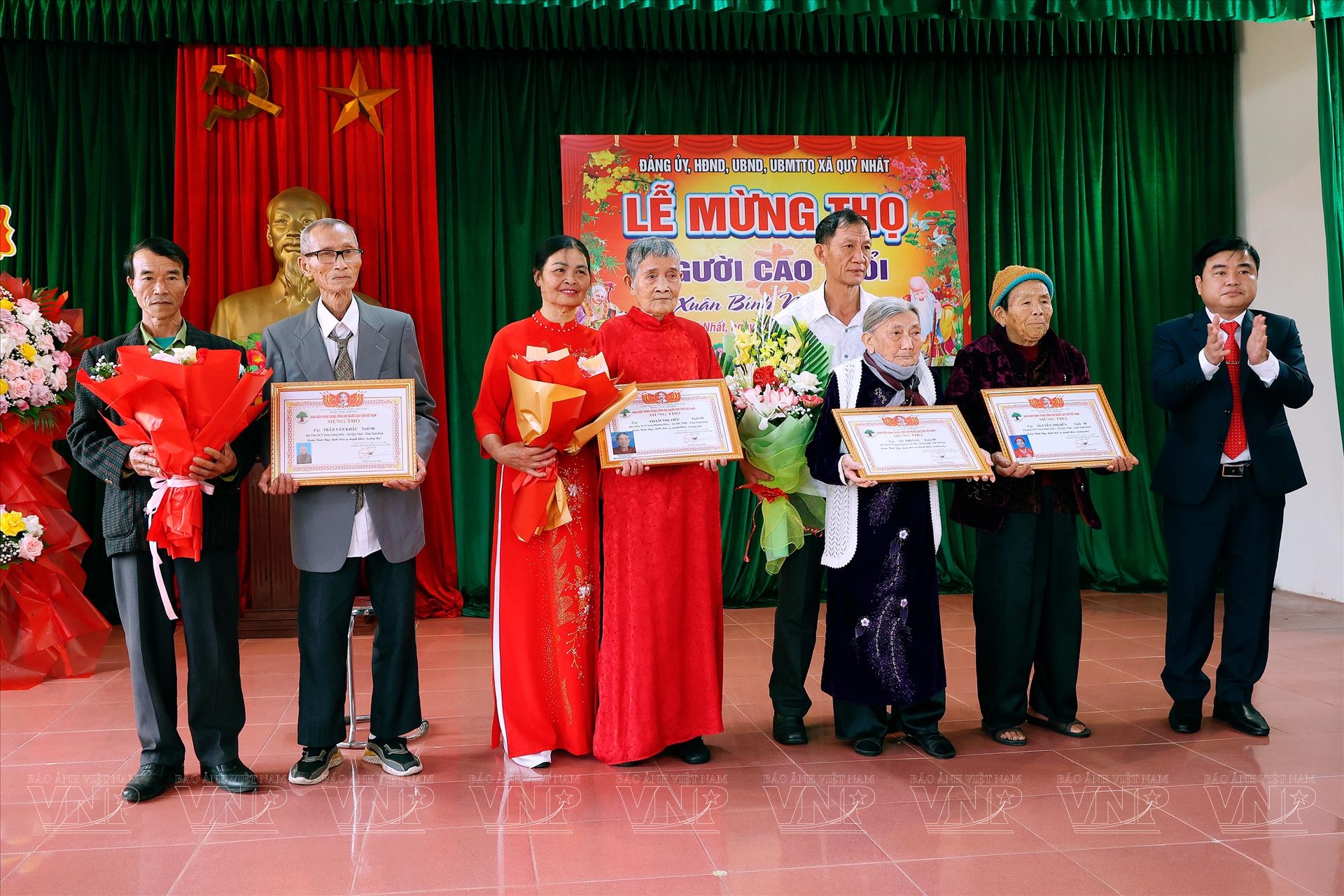 Tham dự buổi lễ có đại diện cấp ủy Đảng, chính quyền, Mặt trận Tổ quốc, các đoàn thể địa phương cùng đông đảo Nhân dân và con cháu của các cụ được mừng thọ. Những bó hoa tươi thắm, những phần quà ý nghĩa cùng lời chúc mừng trân trọng đã góp phần làm nên bầu không khí đầm ấm, thể hiện sự quan tâm, kính trọng và biết ơn sâu sắc của cộng đồng đối với các bậc cao niên.