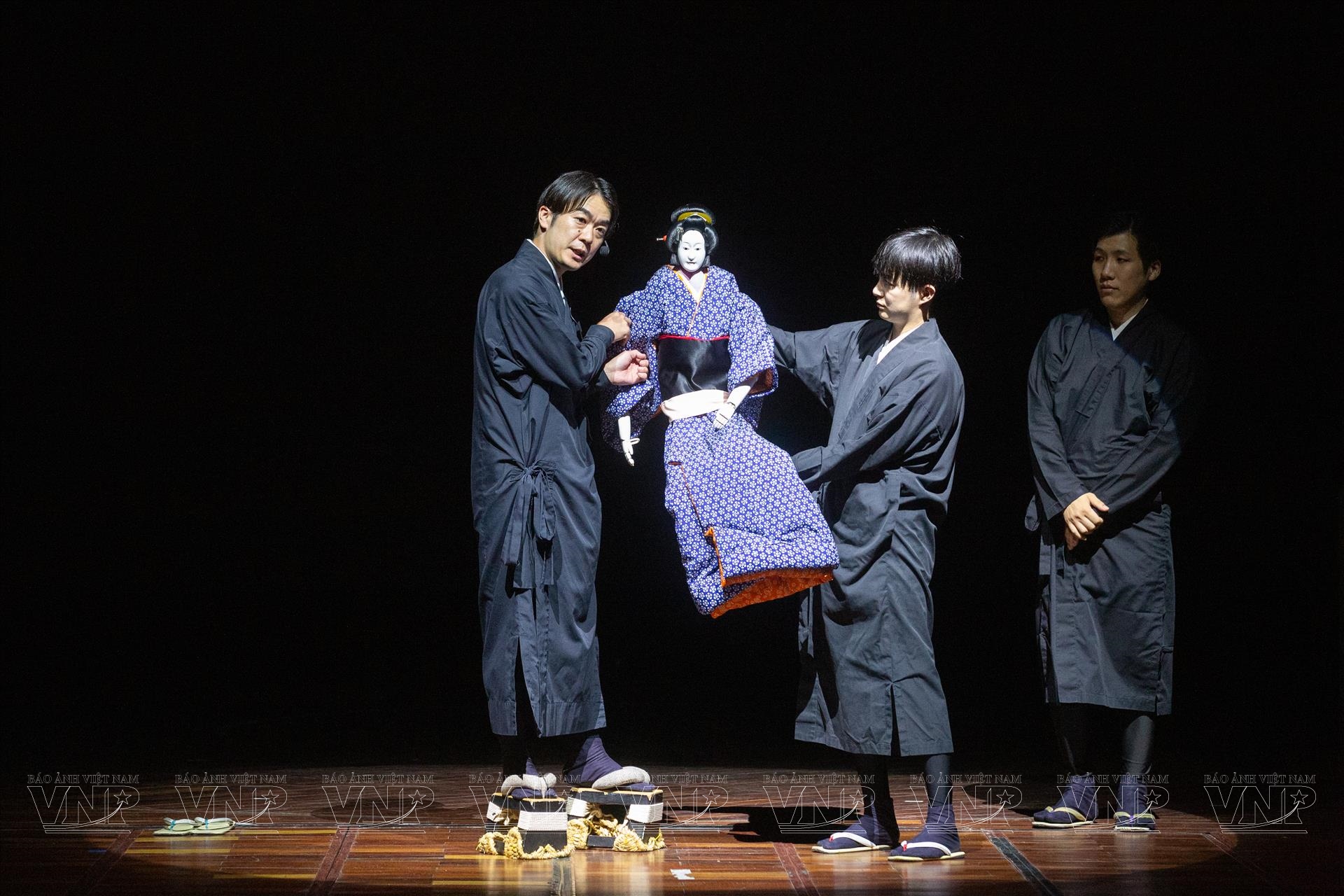 Trong buổi diễn, mỗi con rối được ba nghệ nhân phối hợp điều khiển nhuần nhuyễn, tái hiện sống động hình dáng và tâm lý nhân vật. Với sự phối hợp hoàn hảo giữa ba nghệ nhân điều khiển mỗi con rối, từng cử chỉ, ánh mắt, hay cú xoay người đều trở nên chân thật lạ thường. Cùng lúc, người kể chuyện sẽ truyền tải cảm xúc bằng giọng thoại biến hóa, kết hợp với tiếng đàn shamisen tạo nên một trải nghiệm nghệ thuật liền mạch và cuốn hút.