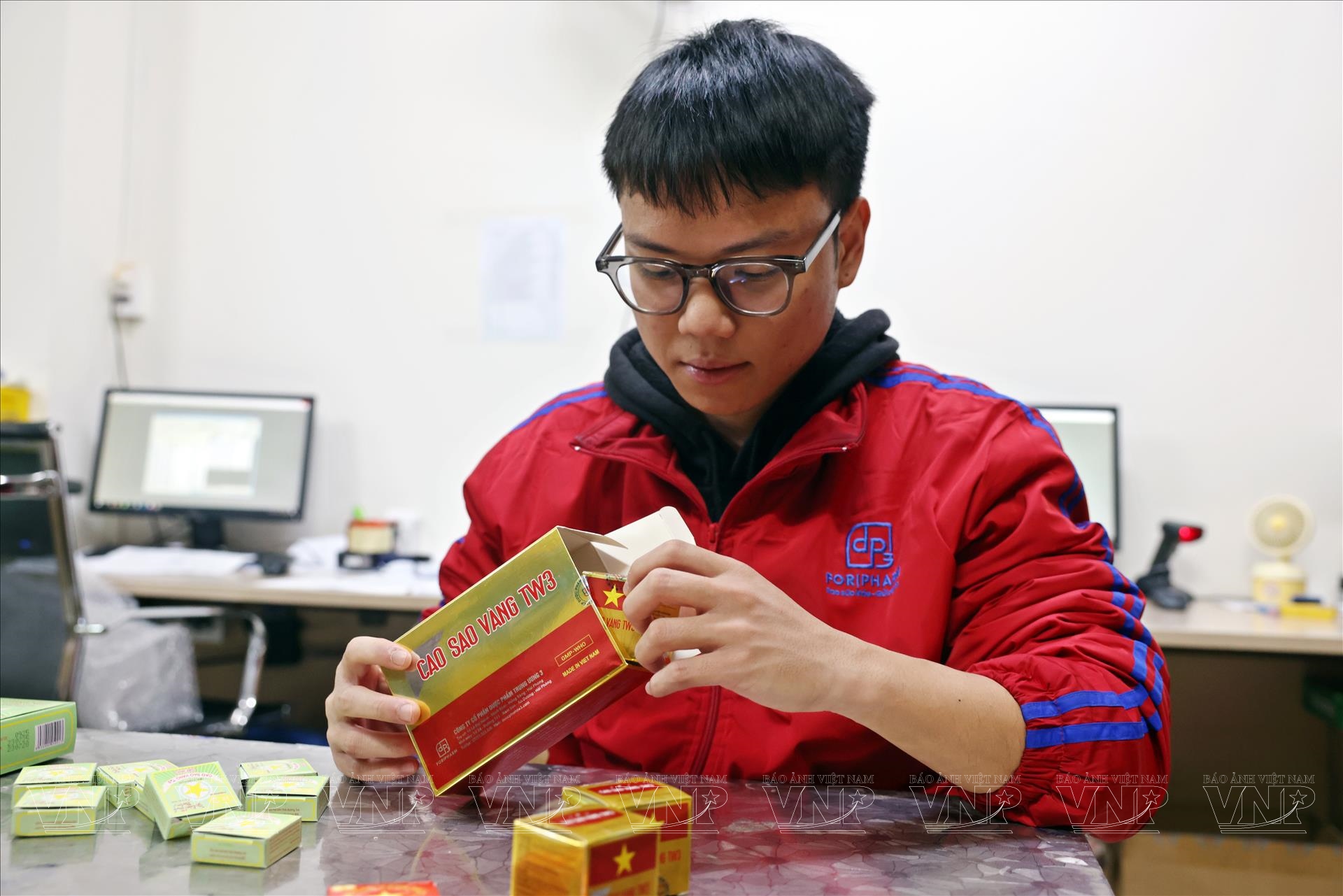 Nhân viên công ty Cổ phần Dược phẩm TW3 đóng gói sản phẩm cao sao vàng. Ảnh: Công Đạt/Báo ảnh Việt Nam