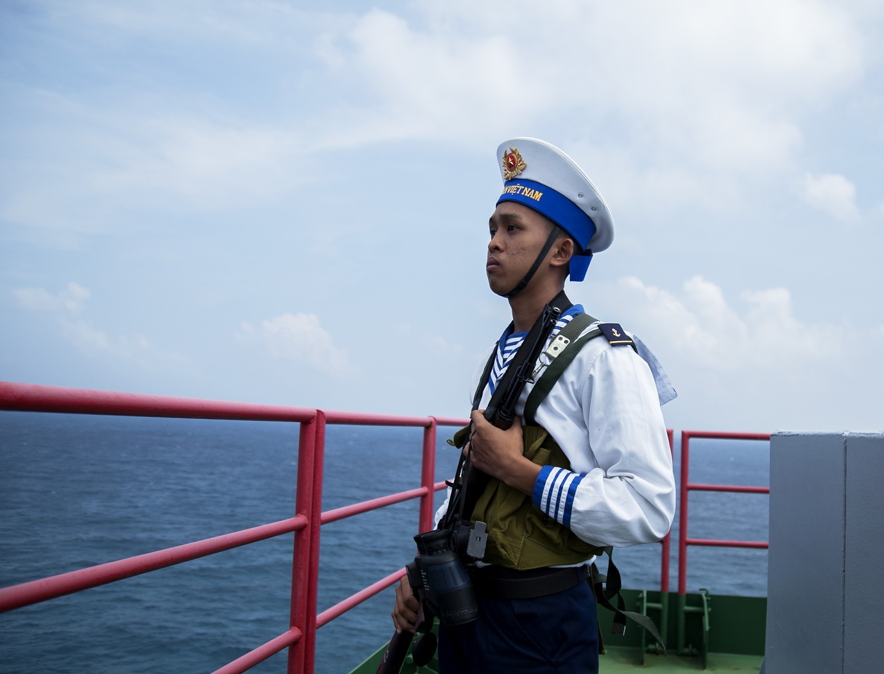 Hướng mặt về phía sông, Thượng úy Lý Thanh Dinh chỉ tay về mô hình nhà giàn cách đó mấy trăm mét và kể, vài tuần trước, anh cùng bộ đội lăn lộn trên mô hình để luyện tập chiến thuật với các loại vũ khí. Khi ra công tác ngoài biển, các anh tiếp tục huấn luyện những nội dung ấy, nhưng với cường độ cao hơn, trong nhiều kịch bản phức tạp hơn.