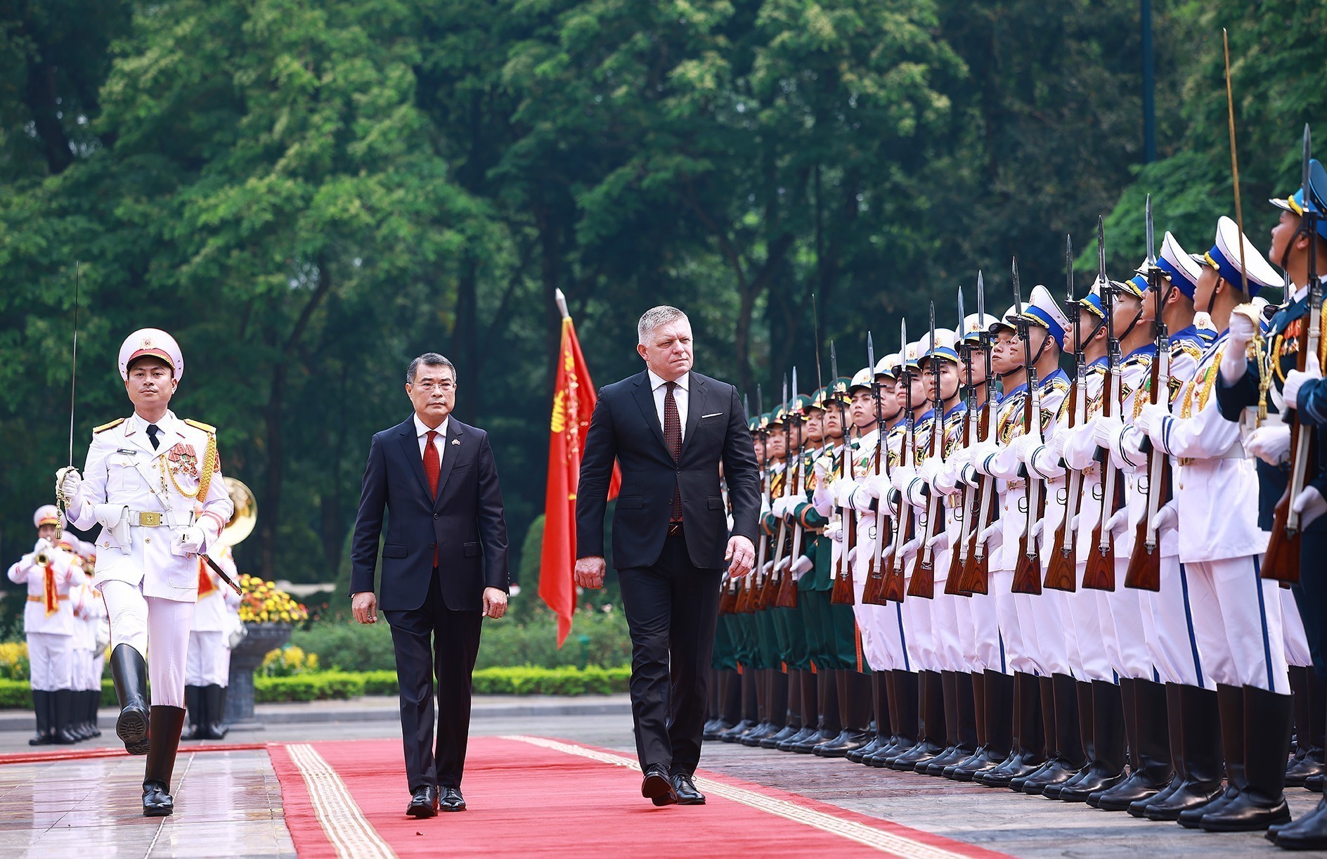 Thủ tướng Lê Minh Hưng chủ trì Lễ đón và hội đàm với Thủ tướng Slovakia Robert Fico. Trong bầu không khí chân thành, cởi mở và tin cậy lẫn nhau, hai Thủ tướng đã có cuộc hội đàm rất thành công và đạt được sự nhất trí cao trên nhiều phương diện về tình hình mỗi nước, về quan hệ hợp tác song phương và các vấn đề khu vực, quốc tế cùng quan tâm.