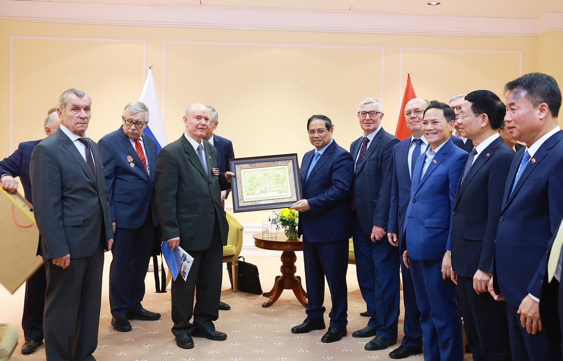Phó Chủ tịch Hội hữu nghị Nga-Việt, Phó Giáo sư, Tiến sĩ Petr Tsvetov gửi lời cảm ơn tới Thủ tướng Phạm Minh Chính đã dành cho Hội cuộc gặp thân tình, nơi Thủ tướng nhắc lại những trang sử vàng trong lịch sử quan hệ giữa hai nước. Ông khẳng định chuyến thăm của Thủ tướng Phạm Minh Chính đang mở ra những triển vọng mới. Dự án xây dựng nhà máy điện hạt nhân đầu tiên tại Việt Nam một mặt sẽ đóng góp cho sự phát triển của Việt Nam, mặt khác sẽ là một tượng đài mới cho quan hệ Nga-Việt. “Chúng ta đang chứng kiến quan hệ hợp tác giữa hai nước phát triển, và giờ đây việc tăng kim ngạch như thỏa thuận cấp cao là hoàn toàn khả thi”, Tiến sĩ Tsvetov khẳng định.