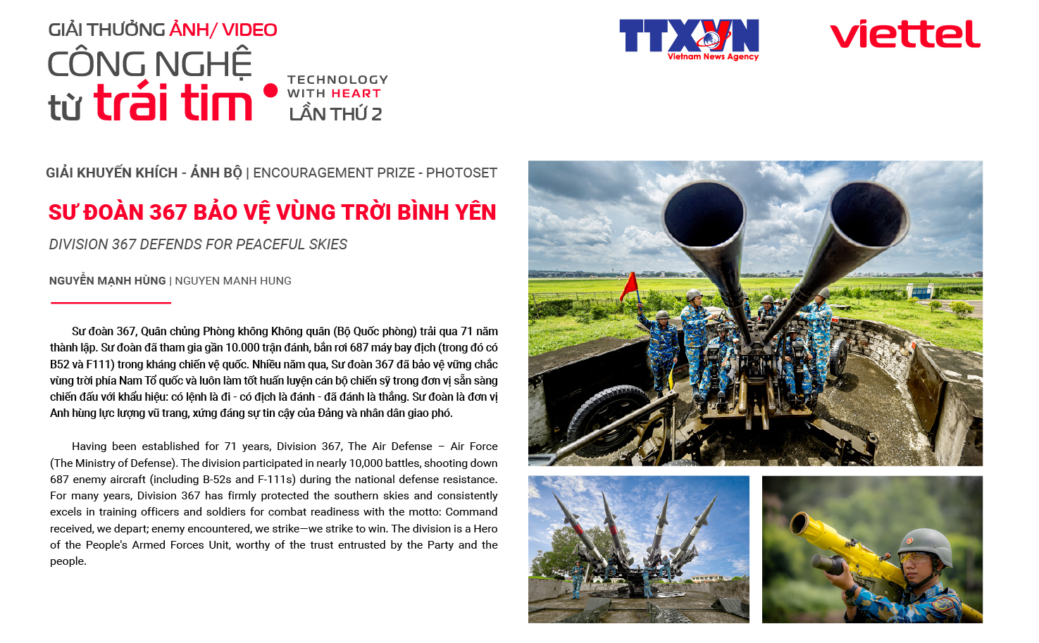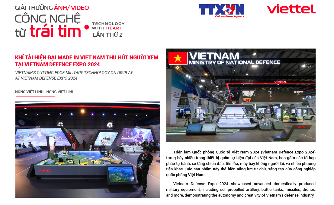 Giải thưởng ảnh/video “Công nghệ từ trái tim - Technology with heart” lần thứ 2 với chủ đề “Sáng tạo Việt - Đường tới thịnh vượng” là nơi tôn vinh những ứng dụng khoa học công nghệ mang lại giá trị thiết thực cho đời sống xã hội. Mặc dù chủ đề chung tập trung vào sự đổi mới sáng tạo, chuyển đổi số và các giá trị nhân văn, lĩnh vực Quốc phòng luôn là một phần không thể tách rời trong con đường phát triển bền vững và thịnh vượng của đất nước.