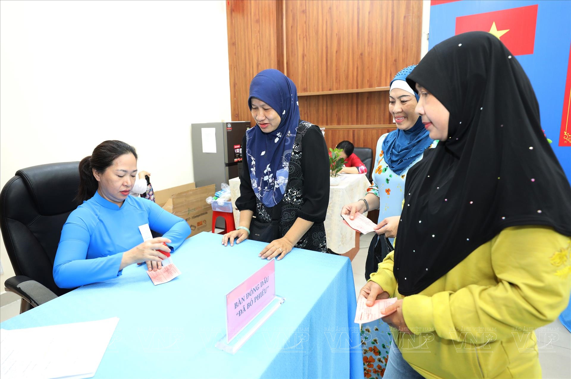 Không chỉ là cử tri, nhiều người trong cộng đồng người Chăm còn trực tiếp tham gia vào công tác phục vụ bầu cử. Chị Mashitago, thành viên Tổ bầu cử khu vực số 13, cho biết Hội đồng Bầu cử phường đã chủ động lựa chọn một số người Chăm tham gia tổ bầu cử nhằm thuận lợi hơn trong công tác tuyên truyền, hướng dẫn và giao tiếp với bà con trong cộng đồng.