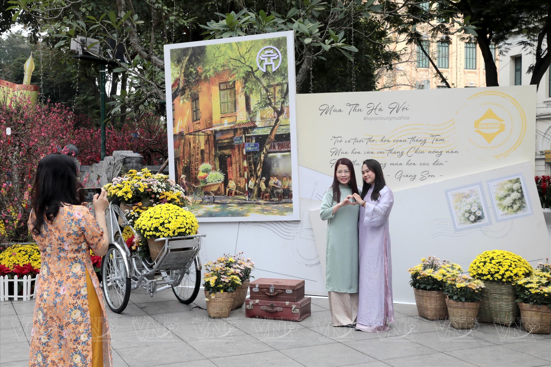 Đan xen giữa những khối chữ hiện đại là sự mềm mại của hàng trăm cây đào và tiểu cảnh quất, quýt nghệ thuật. Tại đây, các nghệ nhân đã tinh tế kiến tạo 04 cụm tiểu cảnh lấy cảm hứng từ ca khúc nổi tiếng "Hà Nội 12 mùa hoa" của nhạc sĩ Giáng Son. Sự kết hợp giữa sắc hoa rực rỡ, những bức họa của họa sĩ Phong Hoàng và những lời thơ sâu lắng đã tạo nên một "khoảng lặng" nghệ thuật, giúp du khách chạm vào hương xuân và cảm nhận rõ nét nếp chơi Tết thanh lịch, tao nhã của người Tràng An.