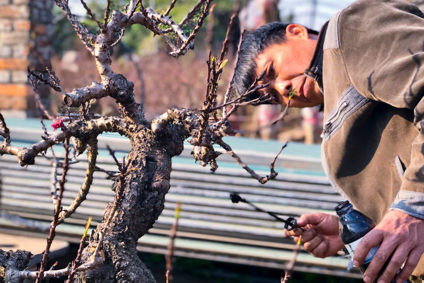 Thời điểm này, khi những cây đào khác đang bước vào giai đoạn tuốt lá để dưỡng nụ, thì đào Thất Thốn lại có một quy trình chăm sóc đặc biệt hơn. Do đặc tính sinh trưởng khác biệt, việc "ép" đào Thất Thốn nở đúng dịp Tết đòi hỏi kỹ thuật cao và sự am hiểu sâu sắc về cây.