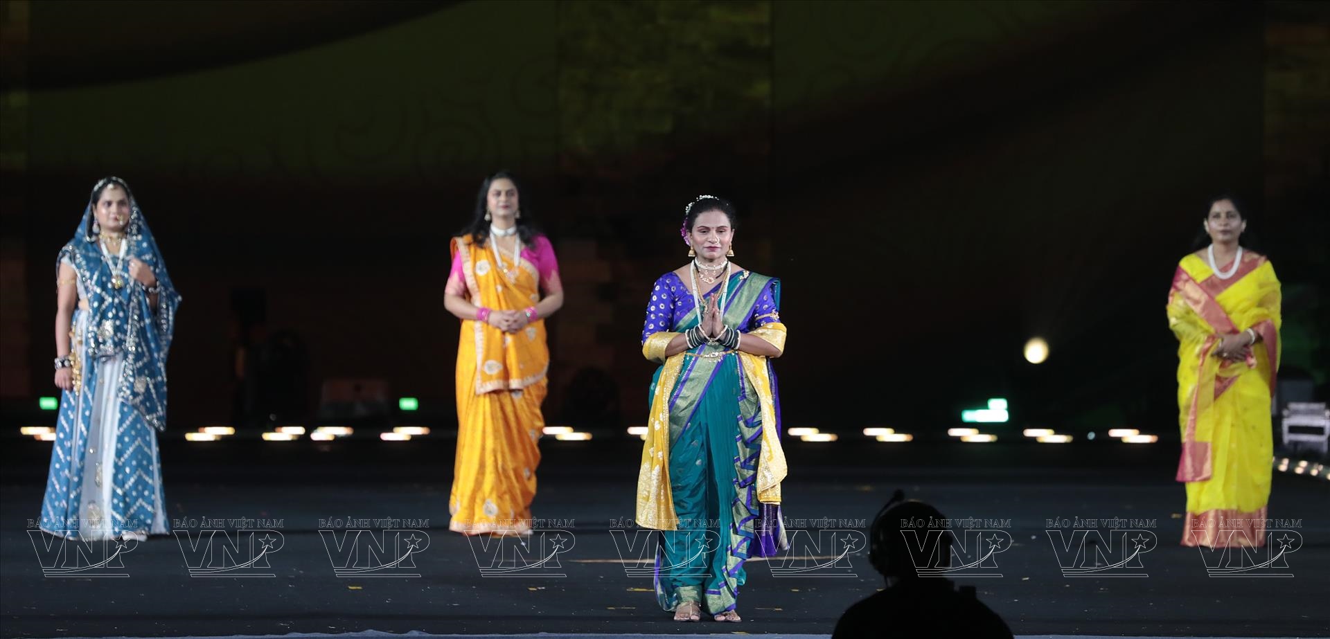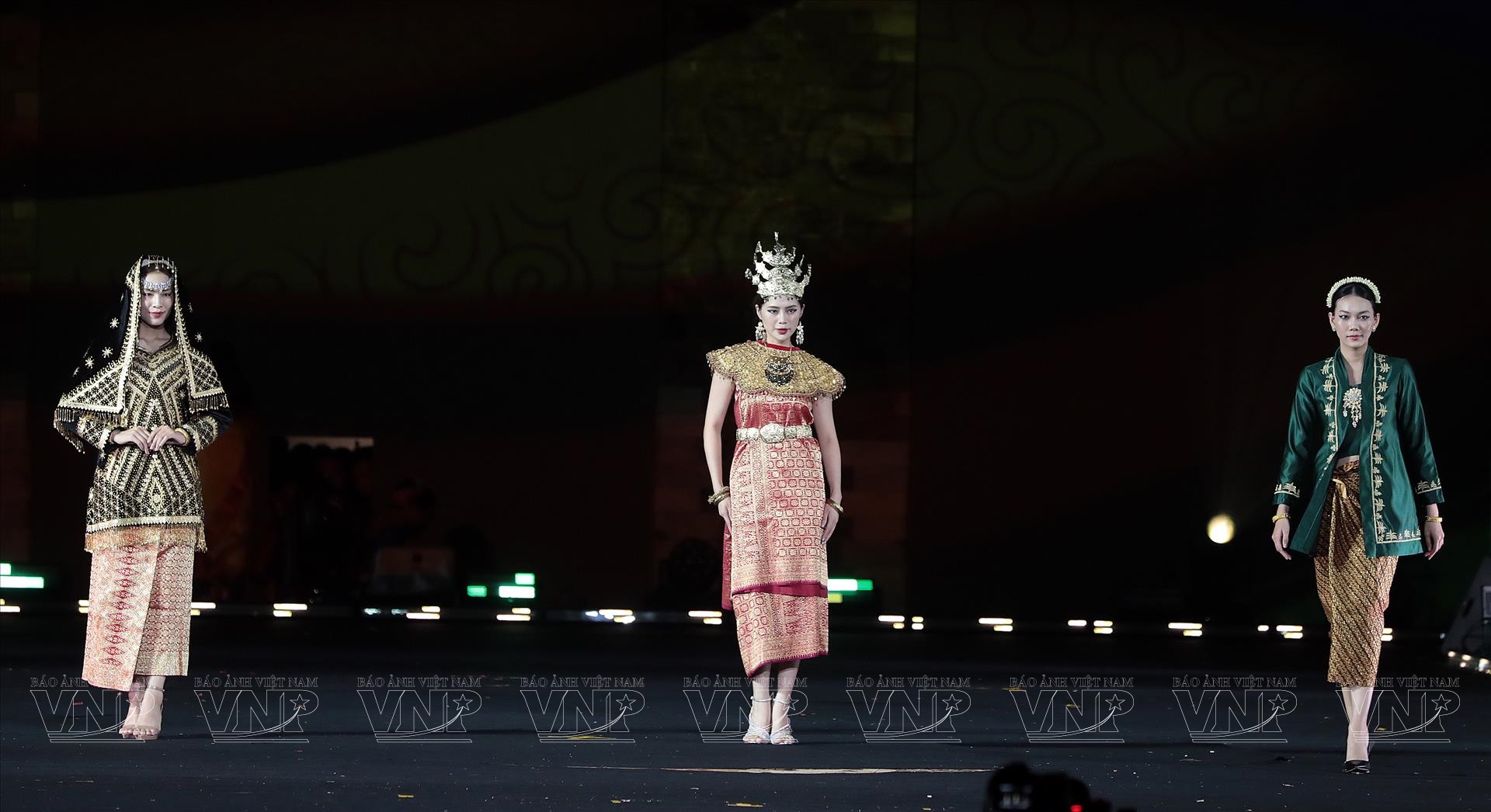 Vẻ đẹp Á Đông đó là sự đối trọng hoàn hảo với Áo dài là những bộ trang phục truyền thống đến từ các nước châu Á láng giềng. Khán giả được chiêm ngưỡng vẻ thướt tha của trang phục Lào với những đường xếp ly tinh tế, sự trang trọng và nghệ thuật của UAE với các lớp vải cầu kỳ, hay màu sắc rực rỡ và nghệ thuật quấn độc đáo của Sari (Ấn Độ).