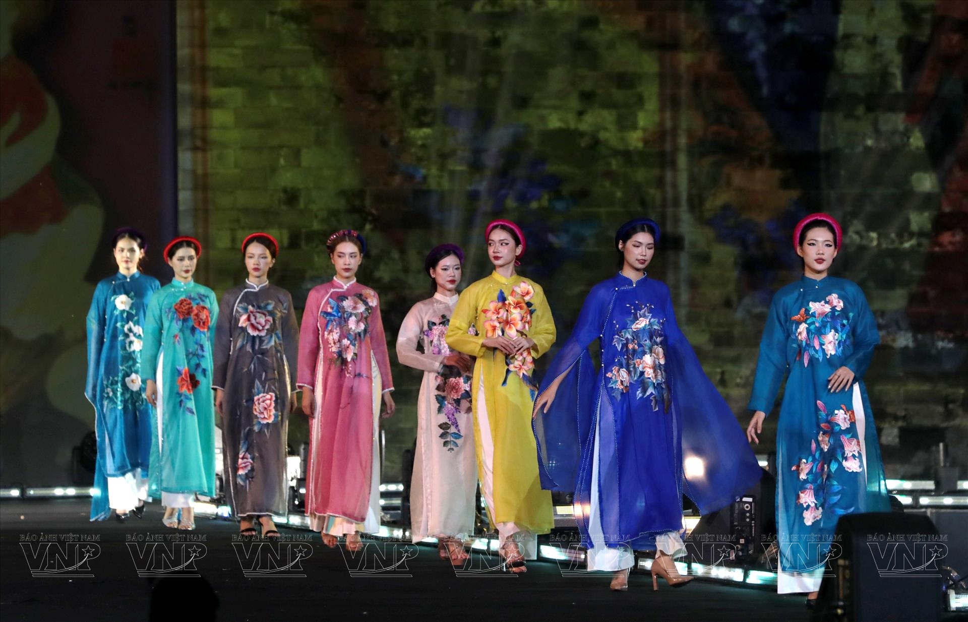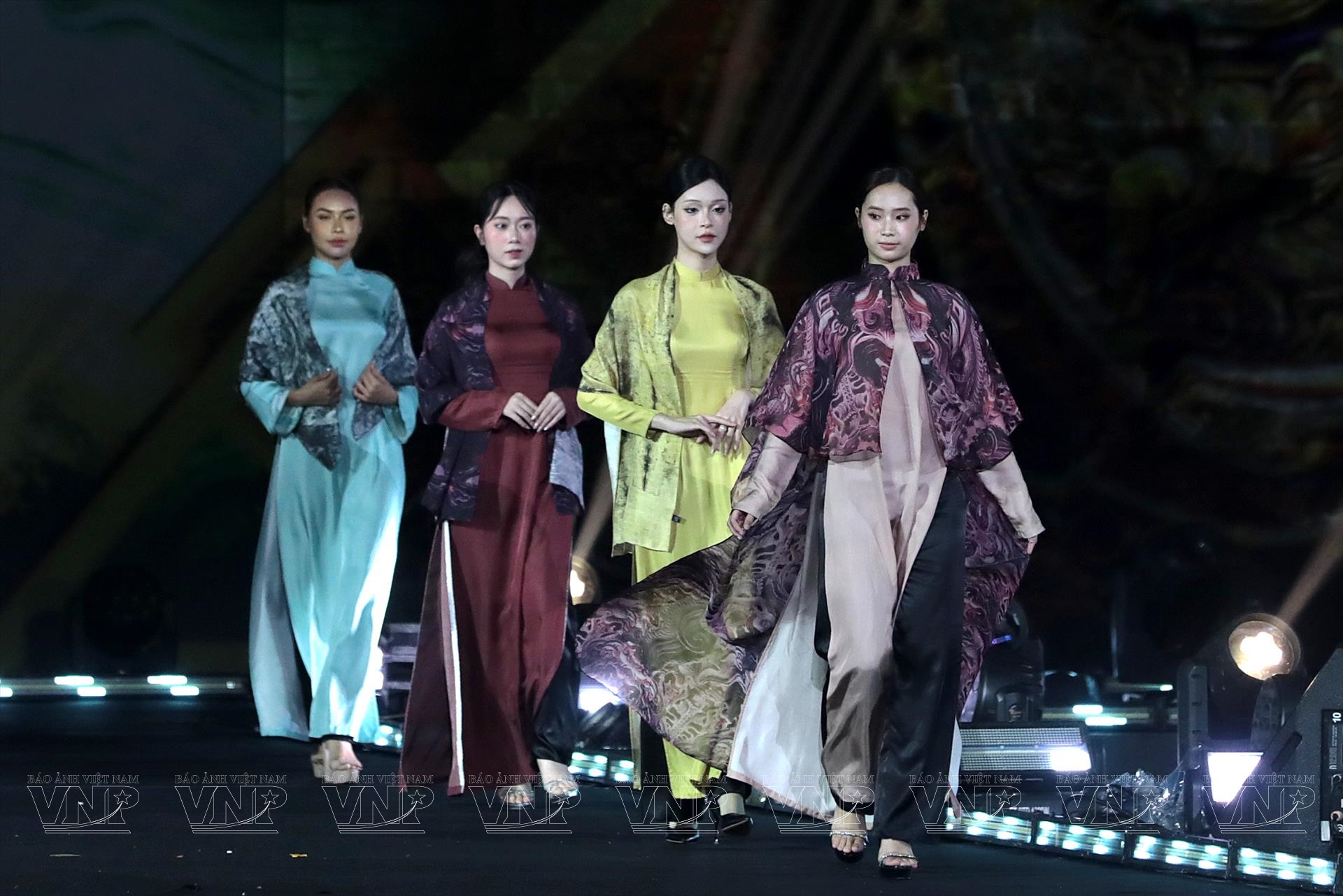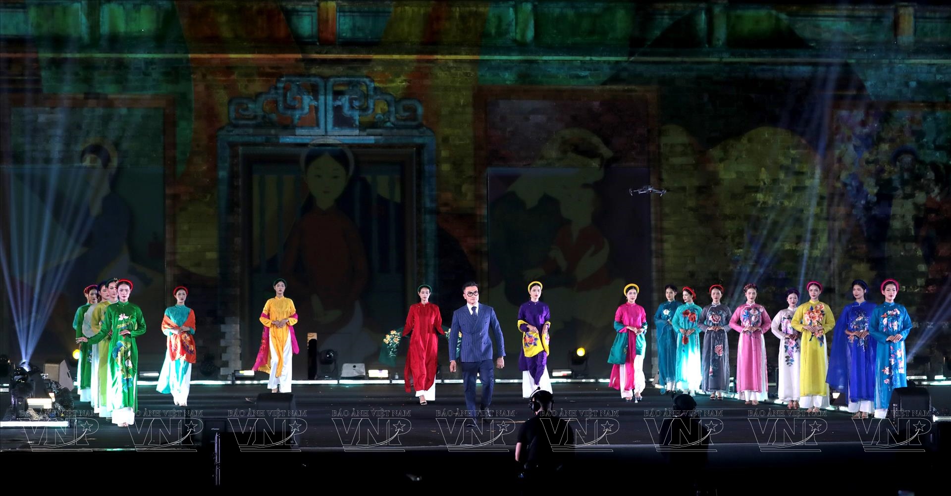 Điểm nhấn của buổi diễn chính là tà Áo dài Việt Nam. Trong "Bước chân di sản", Áo dài không đơn thuần là trang phục mà là một biểu tượng, một sợi dây kết nối. Các nhà thiết kế Việt Nam như Vũ Việt Hà với bộ sưu tập “Hà Noi in Ha Noi”, áo dài Ngân An với bộ sưu tập “Heritage in Ha Noi” đã mang đến những bộ sưu tập Áo dài đầy sáng tạo nhưng vẫn giữ trọn vẹn nét truyền thống. Các mẫu Áo dài được làm từ lụa tơ tằm, nhung, và gấm. Những chất liệu cao cấp gắn liền với thời trang cung đình và dân gian. Họa tiết được thêu, vẽ hoặc in ấn tinh xảo, tái hiện các hình ảnh di sản quốc gia như tranh Hàng Trống, hoa văn gốm sứ cổ, hay phong cảnh non nước hữu tình của Việt Nam.
