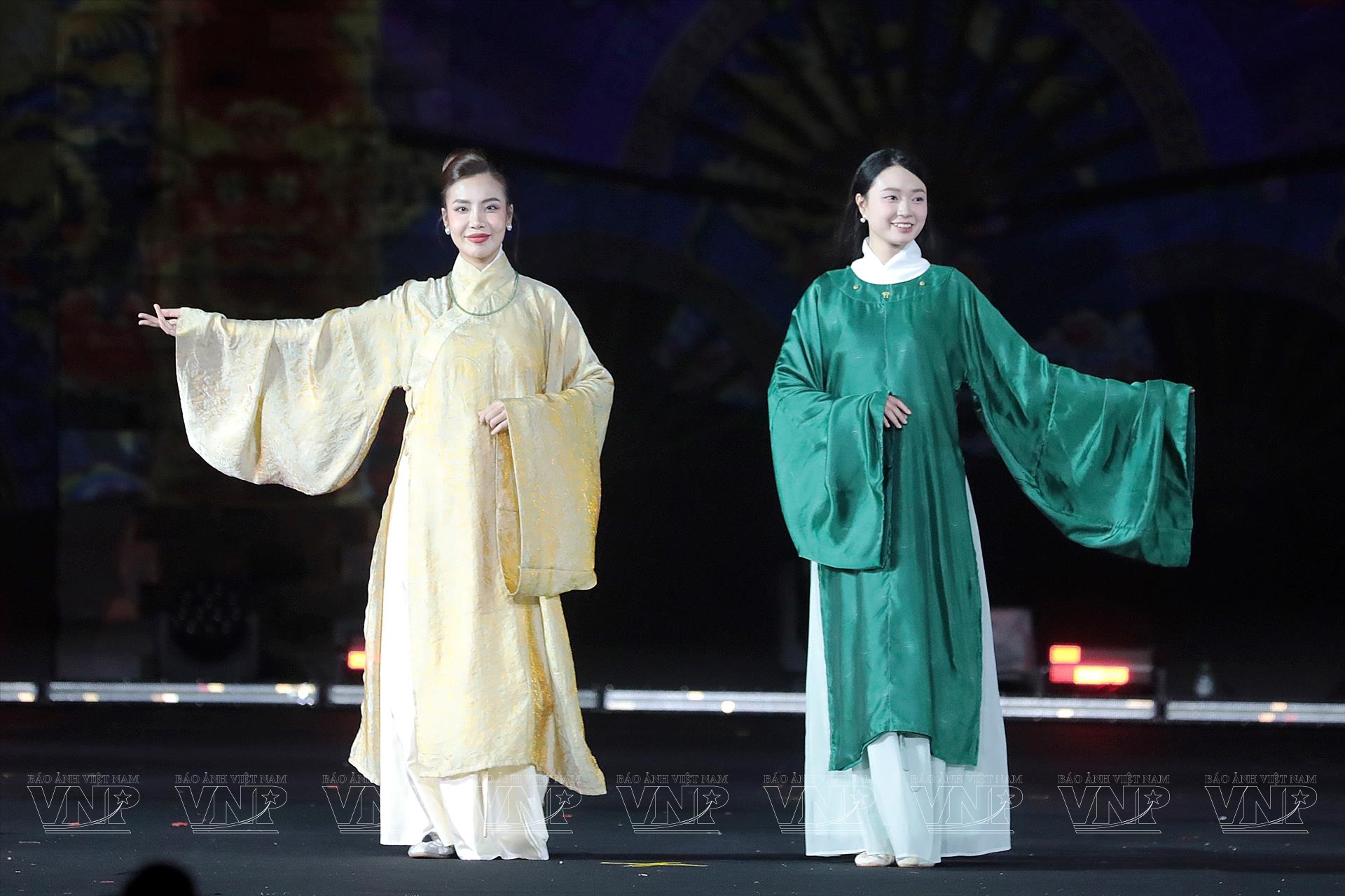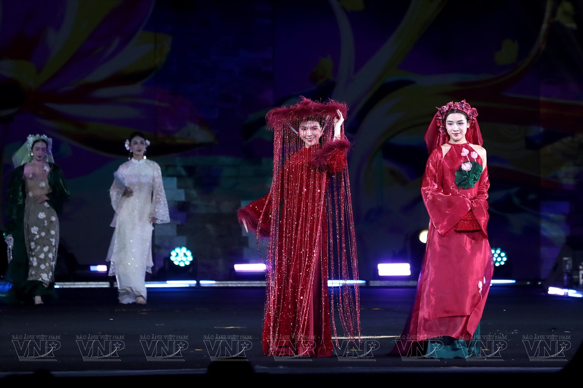 Bên cạnh những mẫu Áo dài cổ điển, chương trình còn giới thiệu những thiết kế cách tân, kết hợp phom dáng hiện đại, đính kết đá quý, hoặc sử dụng màu sắc táo bạo hơn của thương hiệu Hanuo với bộ sưu tập “Nguyệt Hoa”. Sự giao thoa này cho thấy Áo dài là một di sản sống, liên tục phát triển và thích nghi nhưng vẫn giữ được linh hồn thanh lịch, duyên dáng của mình.