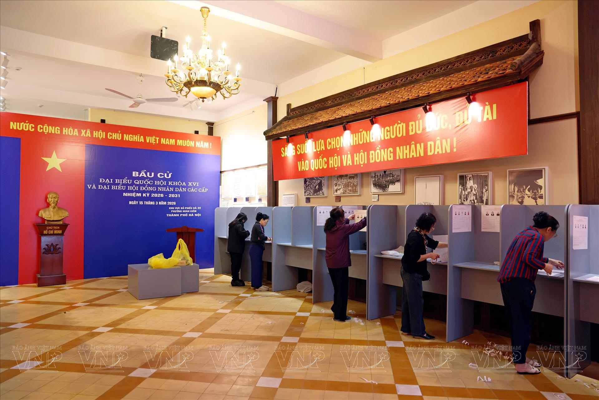 Ngay từ nhiều ngày trước, khu vực trước cửa di tích tại Nhà 48 Hàng Ngang đã được chỉnh trang sạch đẹp. Cờ đỏ sao vàng, băng rôn, pano tuyên truyền về ngày bầu cử được treo trang trọng dọc tuyến phố, tạo nên không khí rộn ràng của ngày hội lớn. Bên trong khu vực bỏ phiếu, các bàn hướng dẫn, danh sách cử tri, hòm phiếu và các vật dụng phục vụ bầu cử được bố trí khoa học, đúng quy định, bảo đảm thuận tiện cho cử tri khi đến thực hiện quyền và nghĩa vụ công dân.