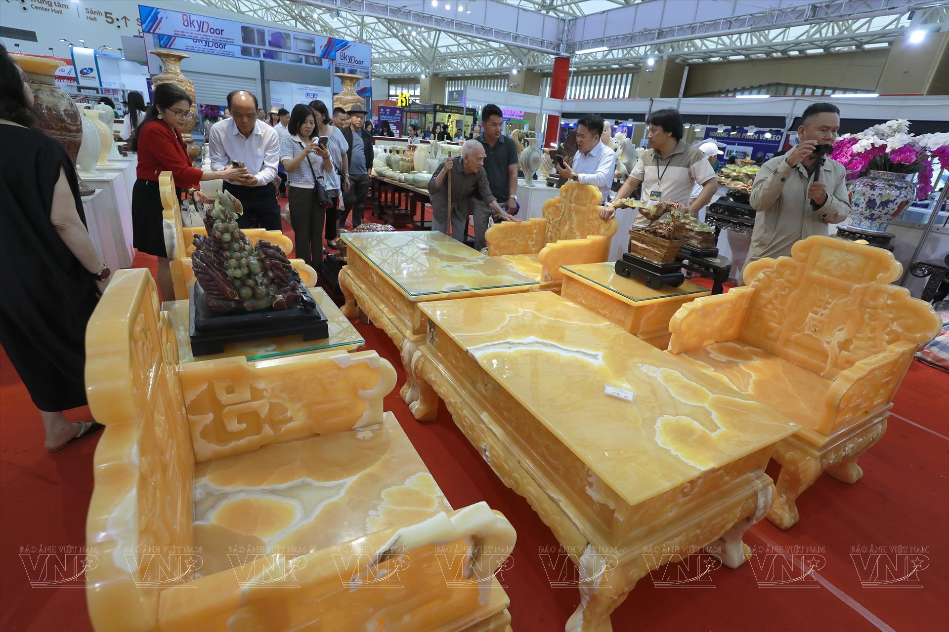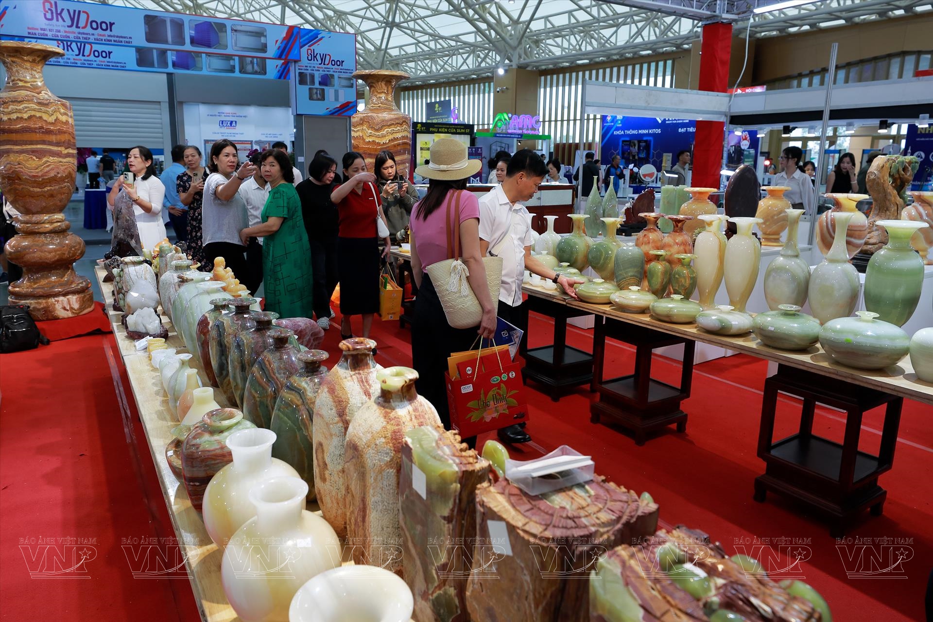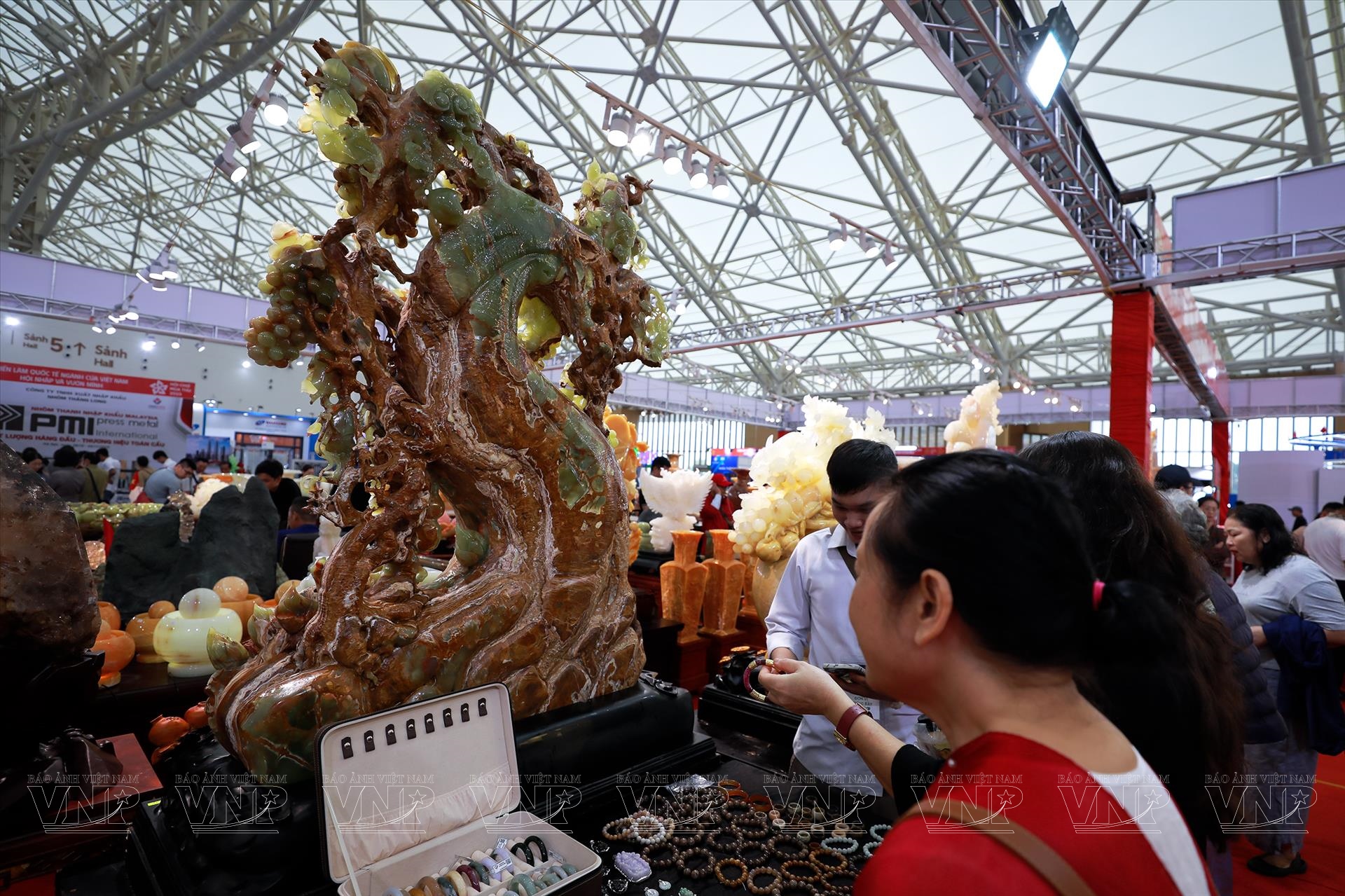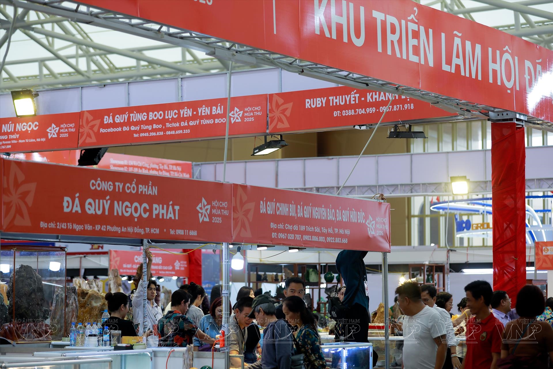 Diễn ra từ ngày 25/10 đến 4/11/2025 tại Trung tâm Triển lãm Việt Nam (VEC), Hội chợ Mùa Thu lần thứ nhất - 2025 quy tụ hàng trăm doanh nghiệp trong và ngoài nước, mang đến không gian trưng bày đa dạng sản phẩm, từ nông nghiệp, thủ công mỹ nghệ đến hàng tiêu dùng, công nghiệp. Giữa không gian sôi động và rực rỡ ấy, khu trưng bày đá quý trở thành điểm nhấn nổi bật, thu hút đông đảo khách tham quan bởi hàng trăm tác phẩm tinh xảo, có giá trị từ vài triệu đến hàng chục tỷ đồng.