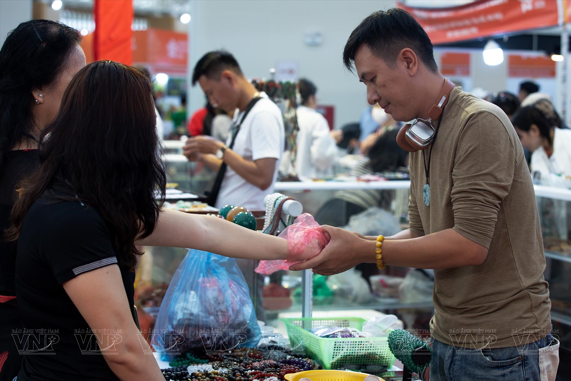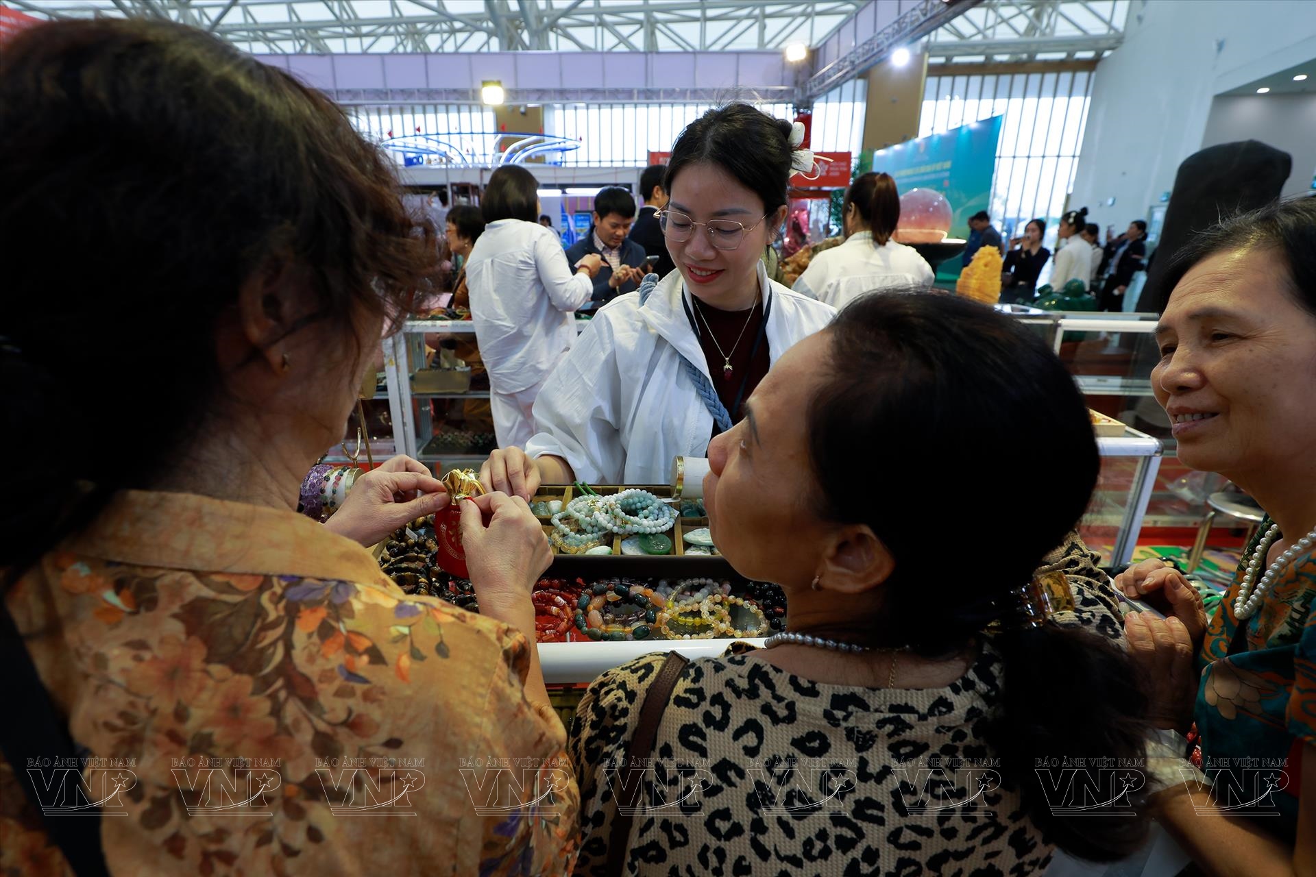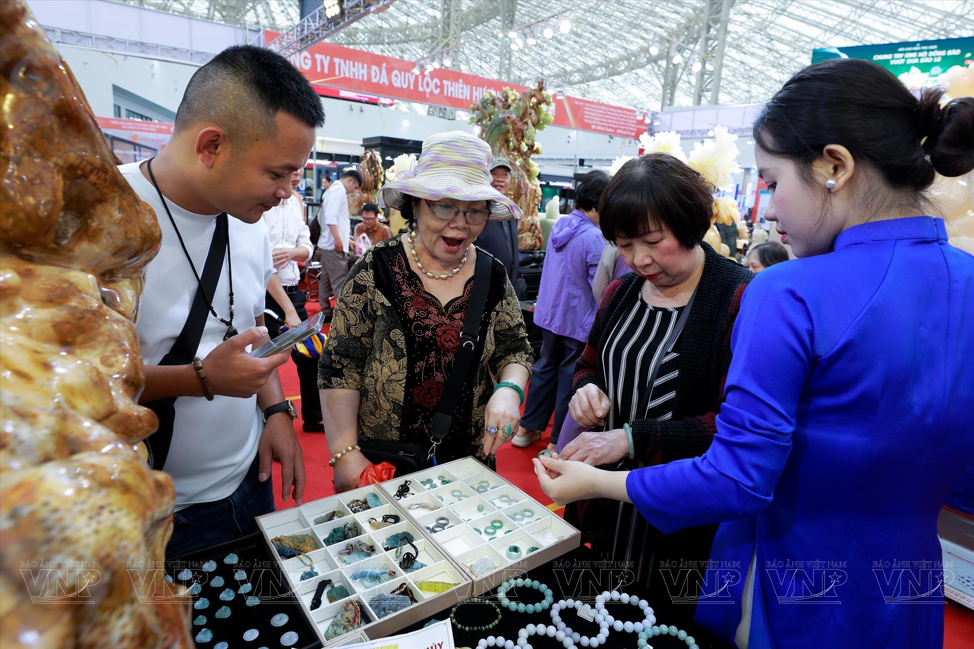 Chị Hồ Thị Ân, chủ gian hàng Ngọc Trường Ân, cho biết: “Các sản phẩm vòng tay ngọc có giá dao động khoảng 500.000–600.000 đồng, trong khi mặt ngọc được ưa chuộng hơn, có giá khoảng 2 triệu đồng. Nhiều khách hàng đến tham quan vì tò mò, rồi bị thu hút bởi sự tinh tế của sản phẩm”.