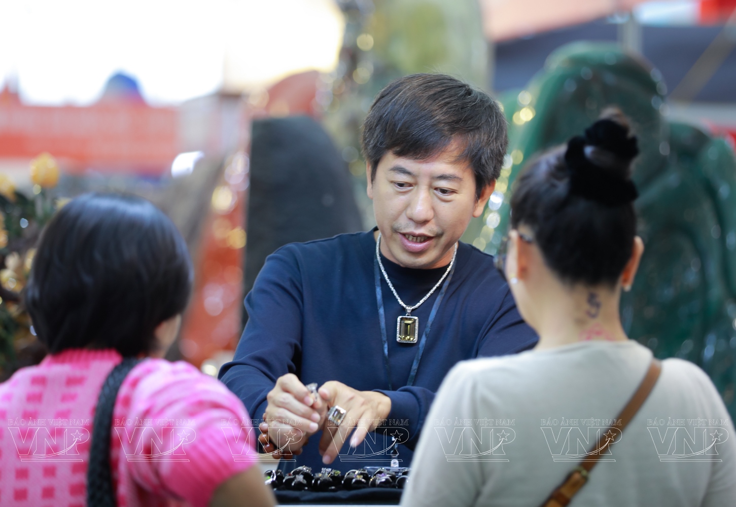 Chị Hồ Thị Ân, chủ gian hàng Ngọc Trường Ân, cho biết: “Các sản phẩm vòng tay ngọc có giá dao động khoảng 500.000–600.000 đồng, trong khi mặt ngọc được ưa chuộng hơn, có giá khoảng 2 triệu đồng. Nhiều khách hàng đến tham quan vì tò mò, rồi bị thu hút bởi sự tinh tế của sản phẩm”.