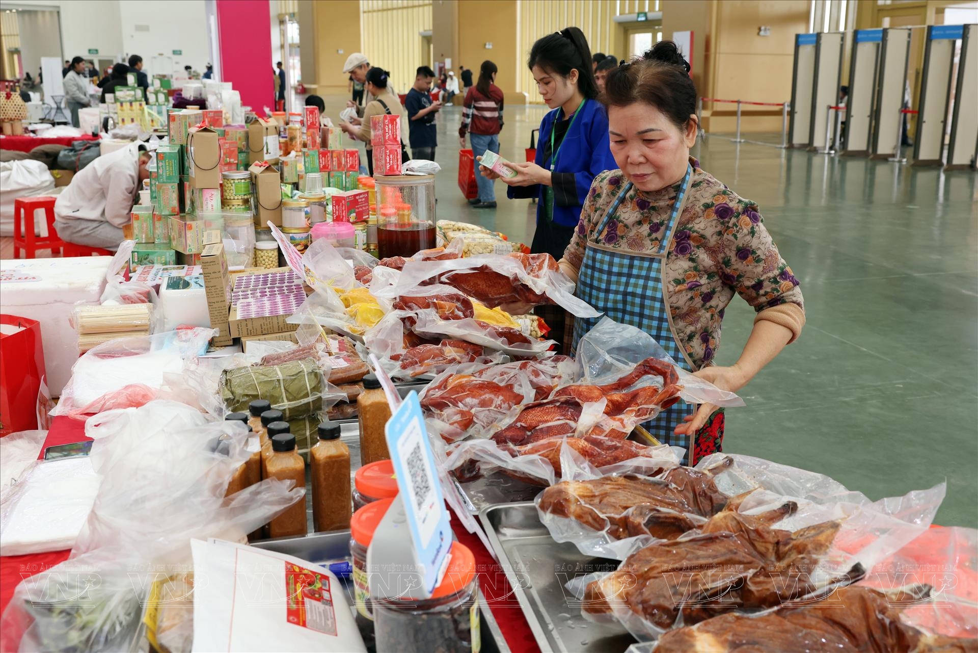 Bên cạnh sắc thái phóng khoáng của ẩm thực Tết phương Nam, không gian trưng bày tại Hội chợ Mùa Xuân 2026 còn đưa người dân và du khách ngược dòng về miền núi phía Bắc – nơi mâm cỗ ngày Tết mang đậm dấu ấn núi rừng và đời sống cộng đồng. Với đồng bào các dân tộc Tày, Nùng, Thái, Mông, Dao…, ẩm thực Tết không cầu kỳ về hình thức nhưng giàu ý nghĩa, gắn bó chặt chẽ với sản vật tự nhiên và phong tục truyền thống.