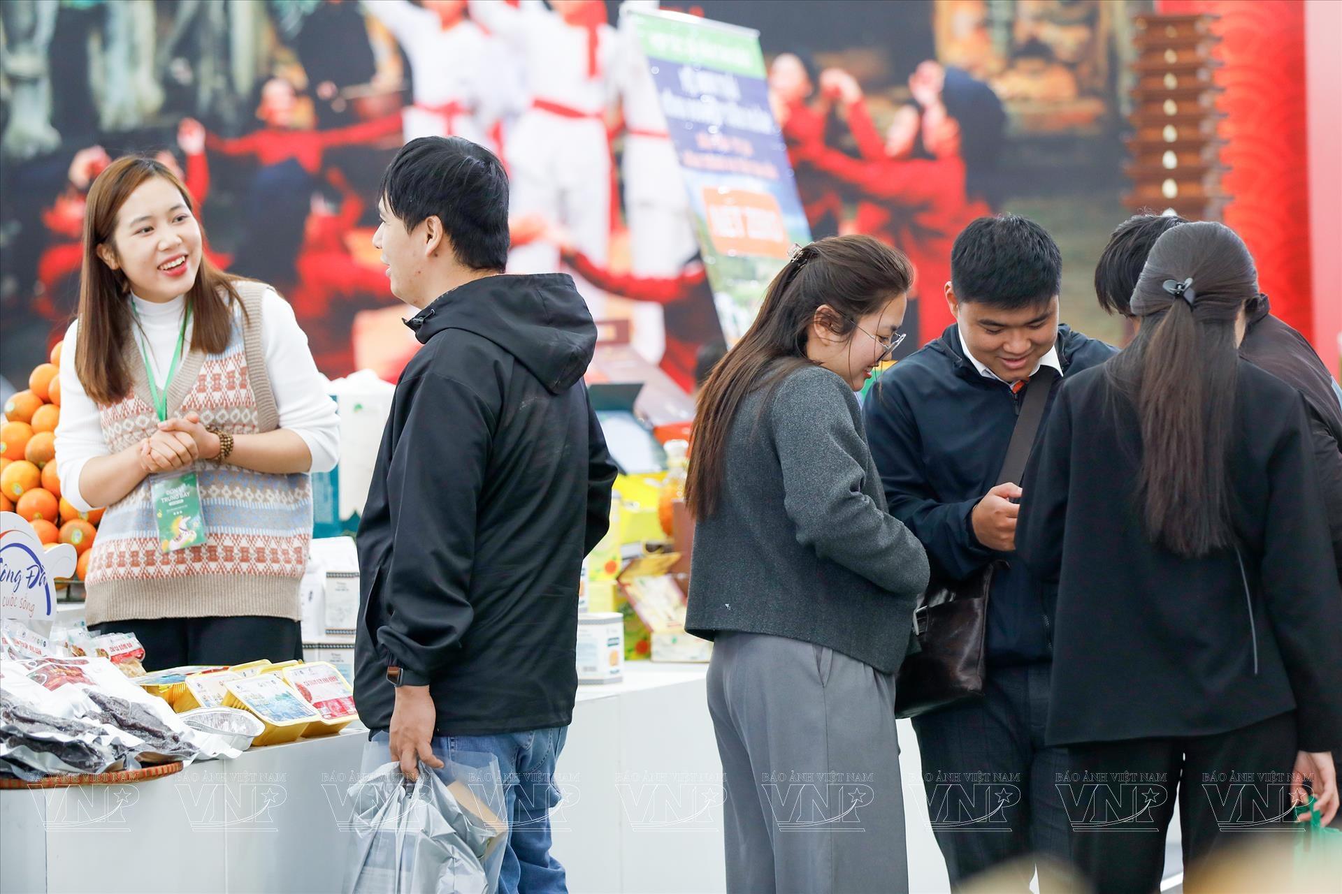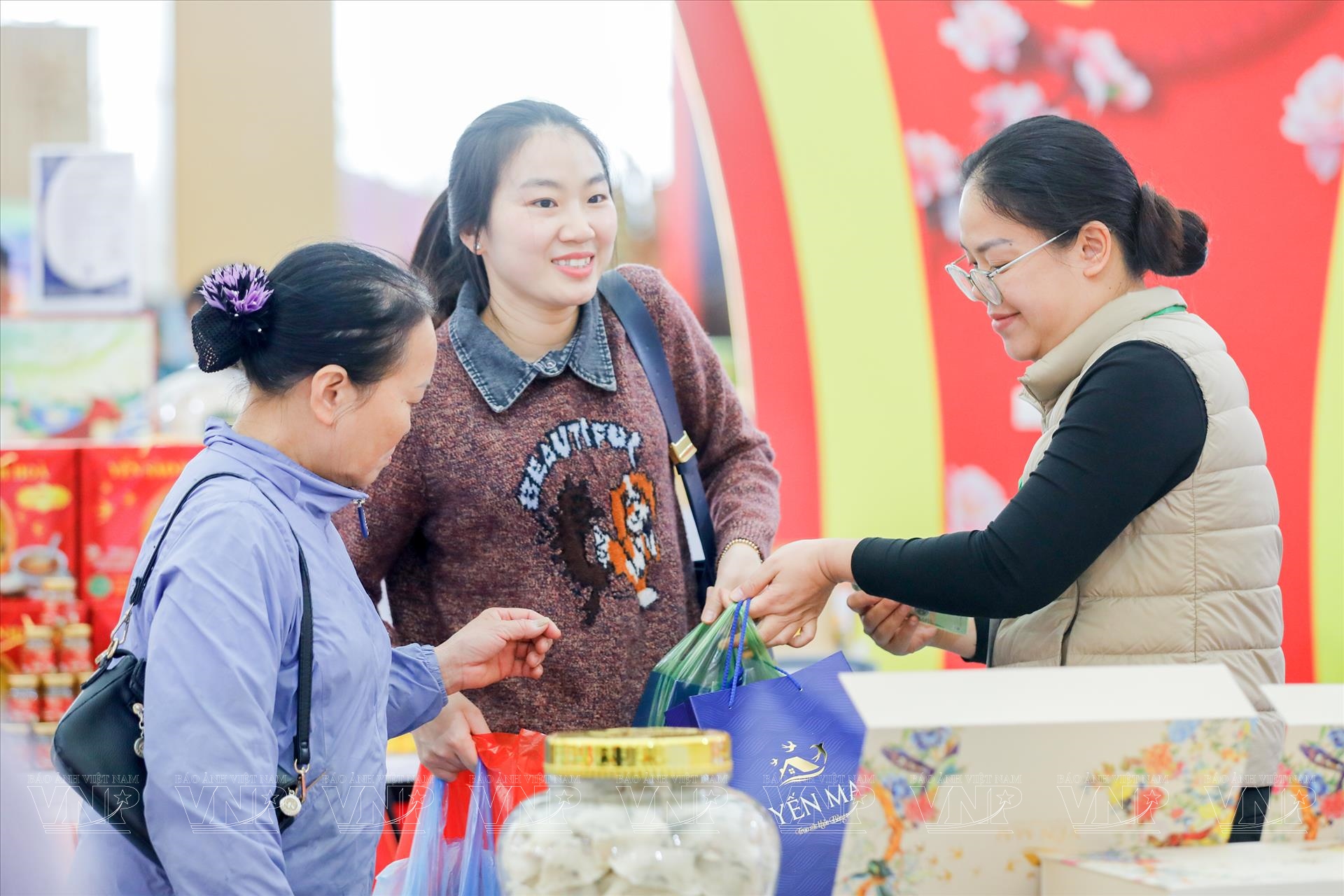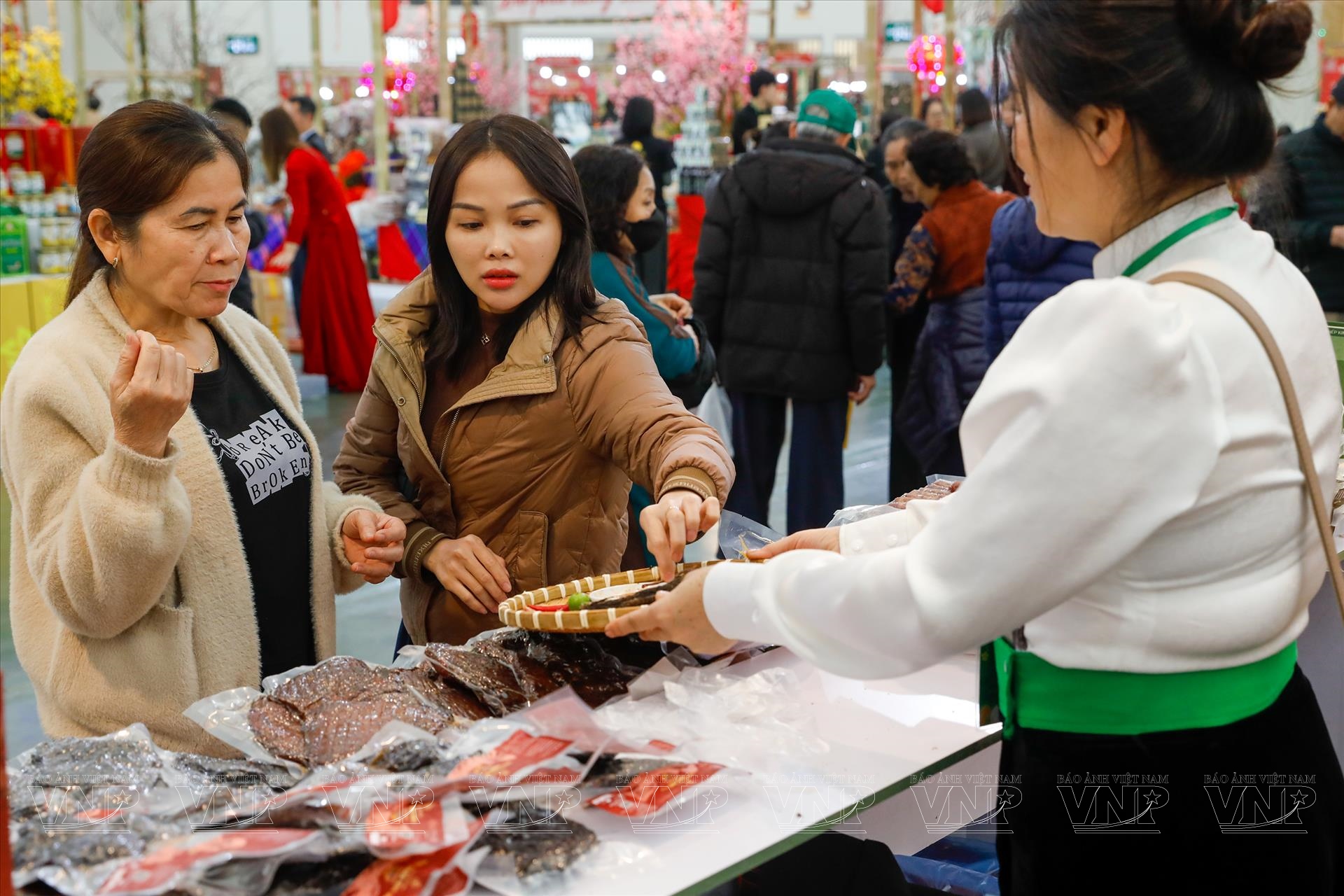 Lượng khách đổ về hội chợ ngày một tăng, khiến không khí mua sắm tại các gian hàng ở phân khu phân khu “Xuân quê hương – Sản vật bốn phương” luôn sôi động. Các lối đi giữa các gian hàng luôn trong tình trạng đông đúc, tiếng chào mời xen lẫn những câu hỏi han về giá cả, nguồn gốc, cách sử dụng sản phẩm, tạo nên một không khí mua sắm gần gũi, vui vẻ, đậm chất hội chợ xuân.