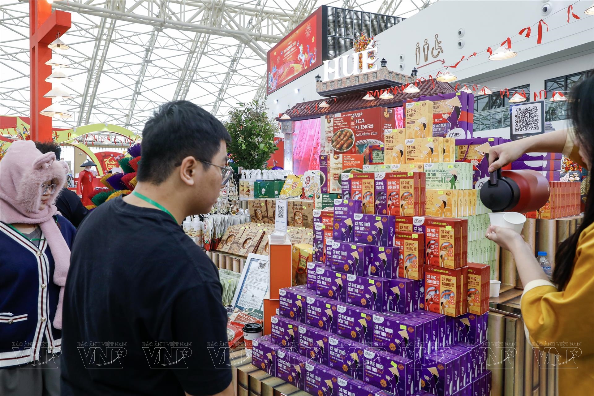 Lần đầu tiên góp mặt tại Hội chợ Mùa Xuân năm 2026, gian hàng của thành phố Huế được các doanh nghiệp địa phương của Tỉnh mang đến loạt sản phẩm đặc trưng của Cố đô như tinh dầu tràm, trầm, nhang Huế, gốm thủ công và các sản phẩm túi xách homemade vẽ tay.