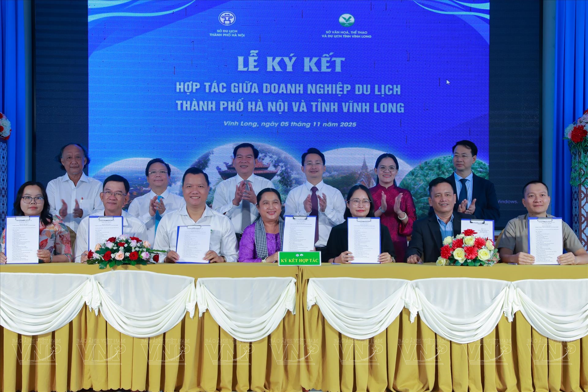 Trong khuôn khổ hội nghị, Sở Du lịch Hà Nội và Sở Văn hóa, Thể thao và Du lịch Vĩnh Long đã ký Biên bản ghi nhớ hợp tác giai đoạn 2026 - 2030, tập trung vào các lĩnh vực trọng điểm: Hợp tác quản lý nhà nước về du lịch; Công tác quảng bá, xúc tiến du lịch; phát triển sản phẩm và liên kết tour tuyến du lịch; hợp tác đào tạo nguồn nhân lực và ứng dụng chuyển đổi số.