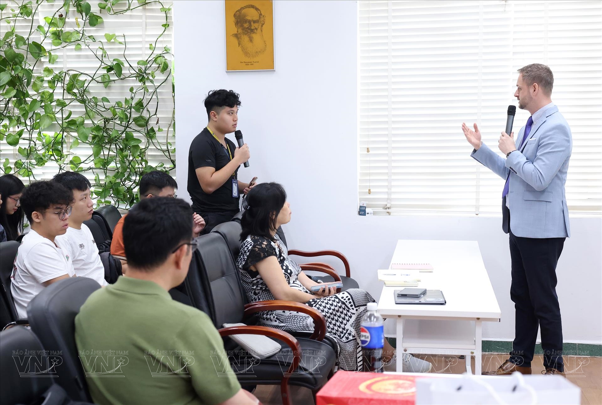 Ông Adam Bozsoki chia sẻ và nhận xét thẳng thắn rằng: “Sự lịch thiệp, hòa nhã và thân thiện chính là ấn tượng đầu tiên mà các nhà tuyển dụng quốc tế tìm kiếm. Khi bước vào buổi phỏng vấn, một nụ cười tự tin, cách chào hỏi đúng mực và phong thái cầu thị sẽ giúp sinh viên ghi điểm mạnh mẽ. Nhà tuyển dụng không chỉ quan tâm bạn làm được gì, mà còn quan tâm bạn là ai trong tập thể.”