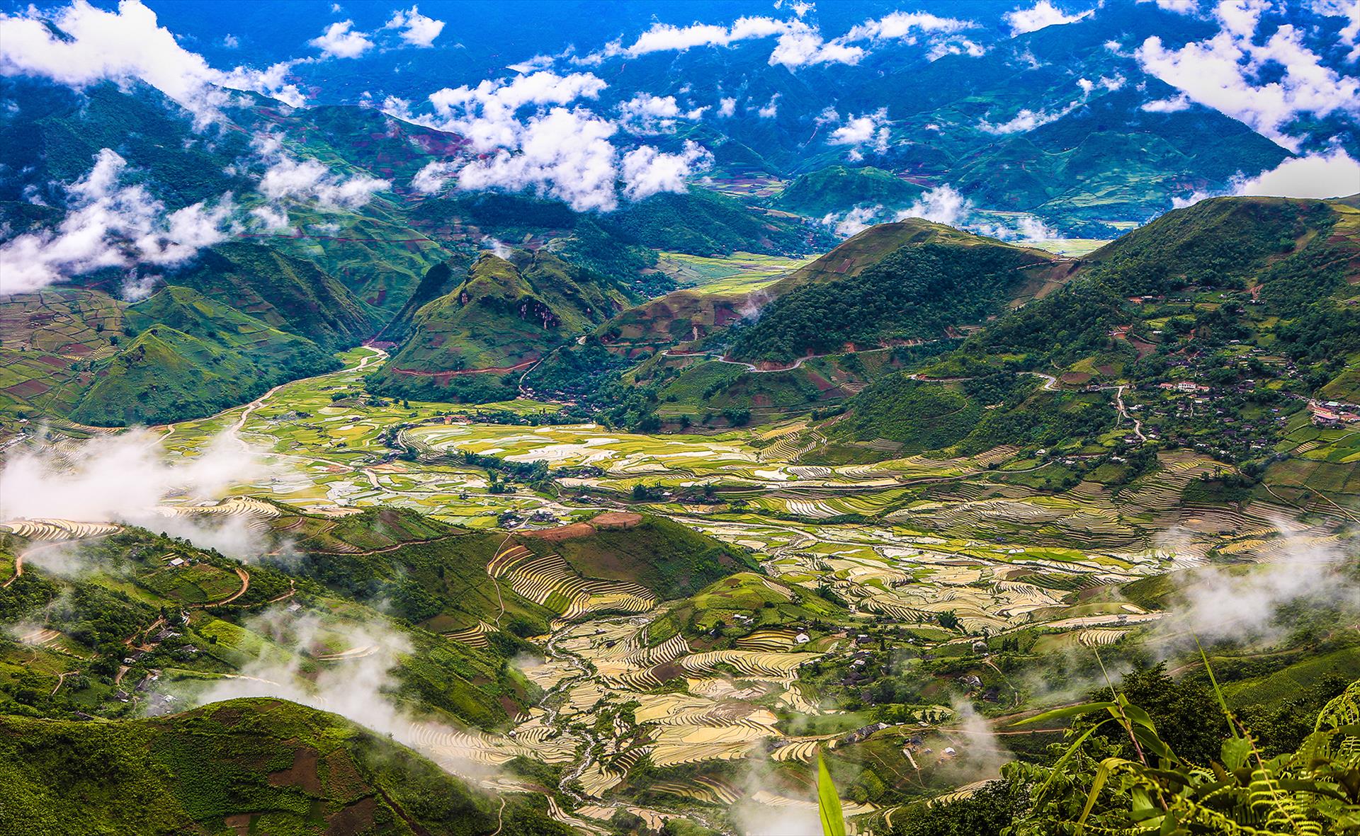 Sáng hôm sau thức dậy, thị trấn Mù Căng Chải heo hút nằm lung chừng con đèo Khau Phạ như chìm trong tấm màm mù khổng lồ. Cái lạnh như râm ran cơ thể, chúng tôi xuôi theo quốc lộ 32 ngoằn ngèo, uốn éo qua những thung núi về thung lũng Cao Pha thì vỡ òa với khung cảnh hùng tráng mây trườn từ trên đỉnh núi Khau Phạ xuống ruộng bậc thang đang mùa đổ nước.