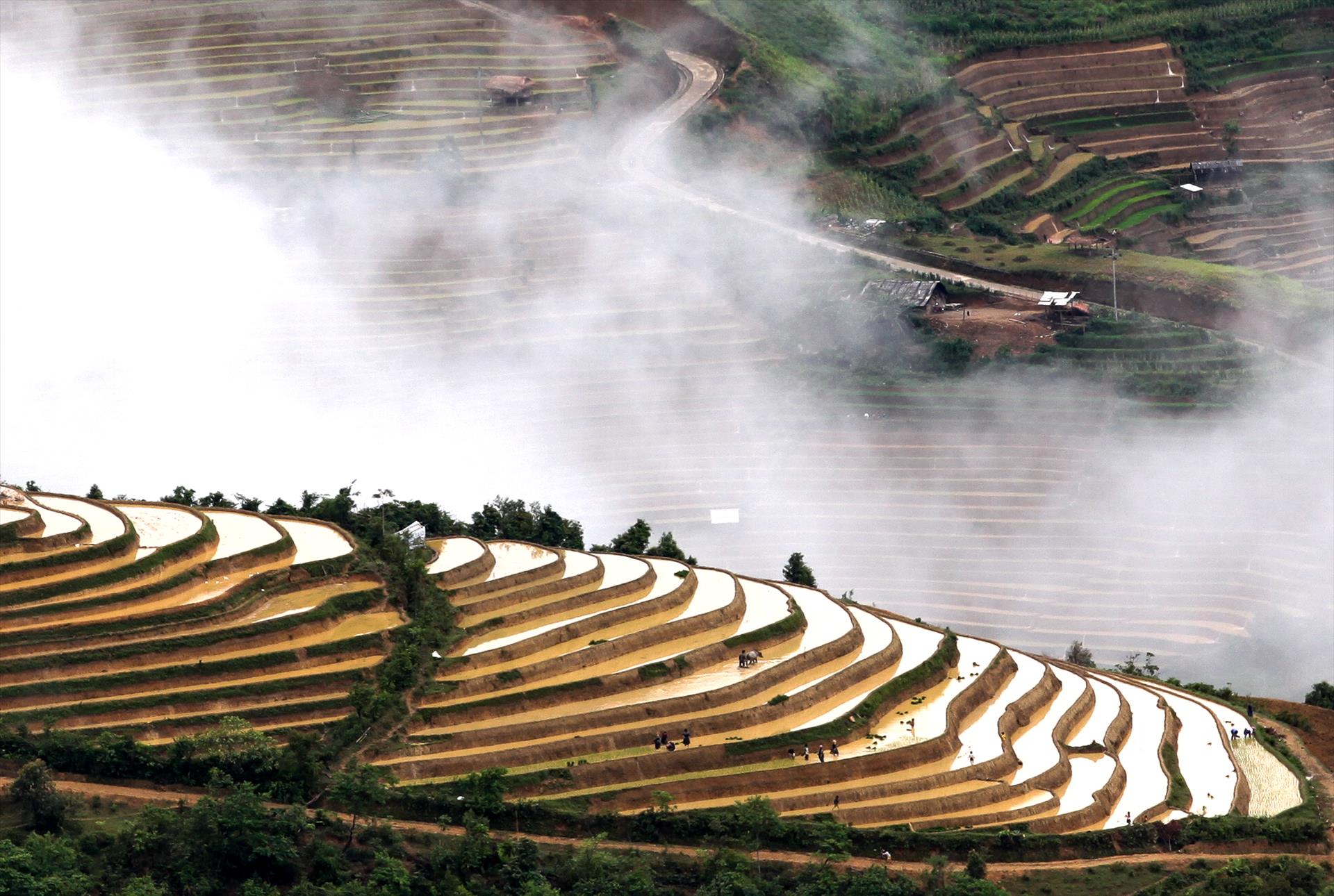 Lần đó, chúng tôi lên Mù Căng Chải đúng vào hôm mù quá hóa mưa. Mù đến nỗi, xe phải nhích từng mét trên đèo Khau Phạ bởi bị khuất tầm nhìn. Đêm ngủ trên núi, mưa trút ầm ào mà sốt ruột bởi sẽ không di chuyển đến các địa danh La Pán Tẩn, Chế Cu Nha hay thung lũng Khau Phạ để ngẳm cảnh mùa nước đổ. Nhưng, trận mưa này là niềm hân hoan đối với bà con tộc người Mông, Thái nơi đây, bởi nước mưa sẽ tràn ắp con ruộng, dễ dàng cho một mùa canh tác lúa nương mới.